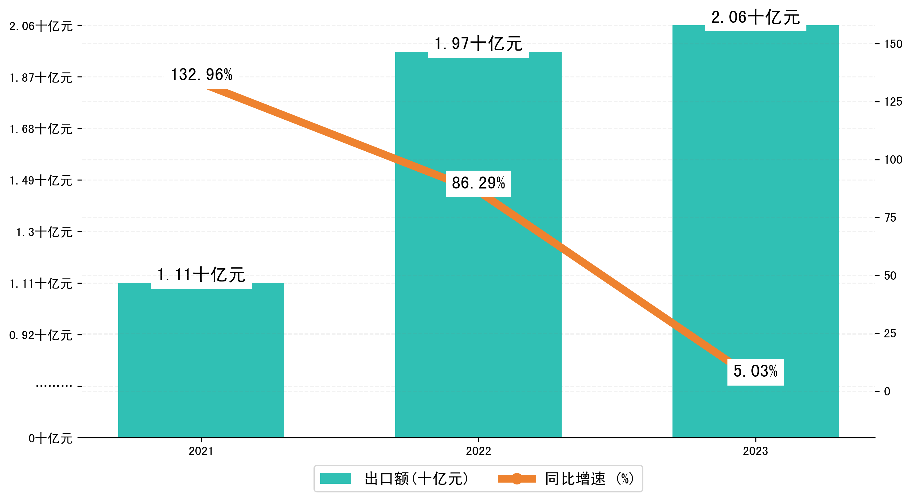 以美元计,2023年1-7月池州市出口额为2,9775.9145万美元,相比上年同期增加了541.313万美元,同比增加-0.70%。