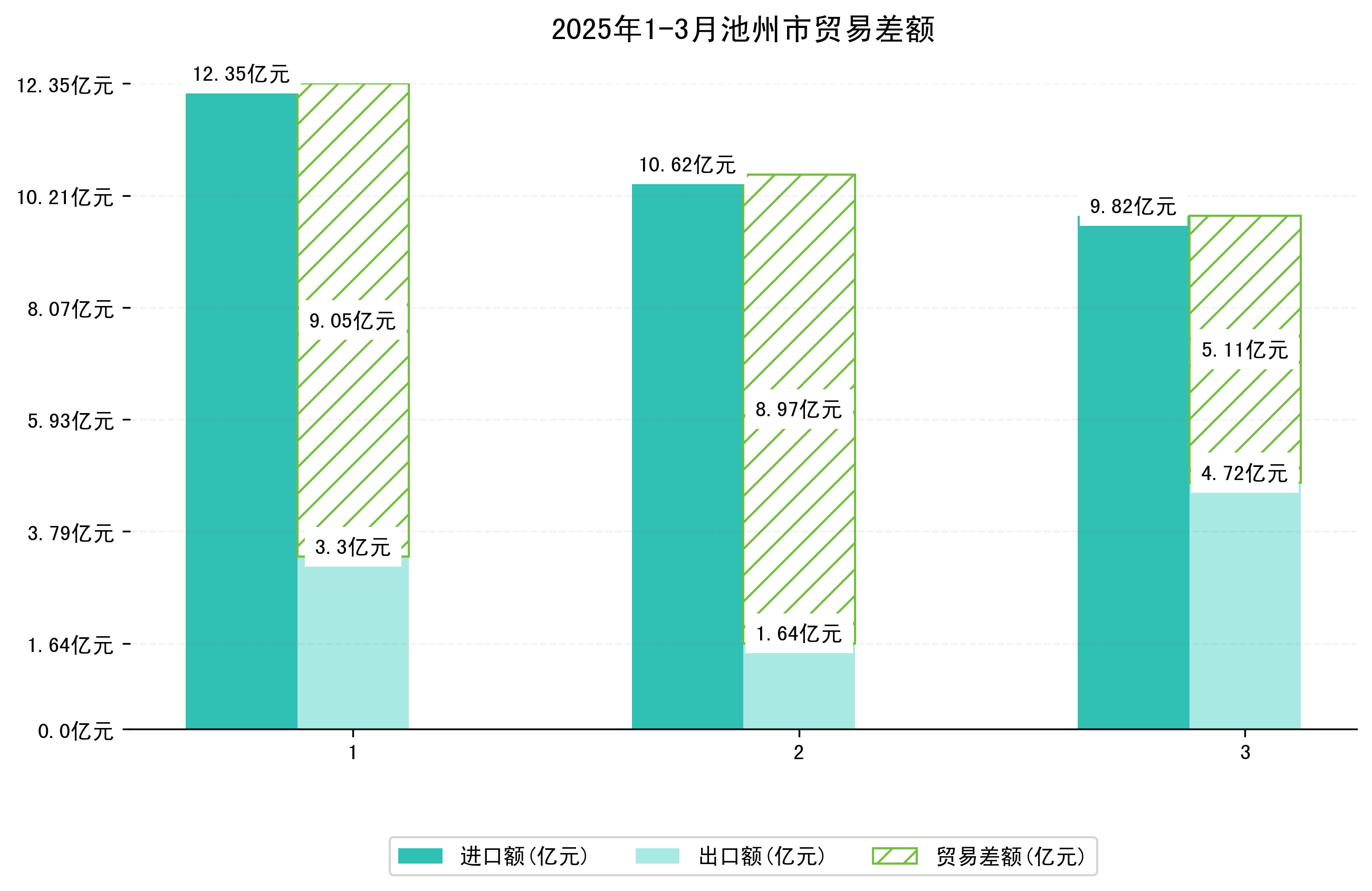 一、2025年3月池州市单月出口总额及进出口差额统计分析
