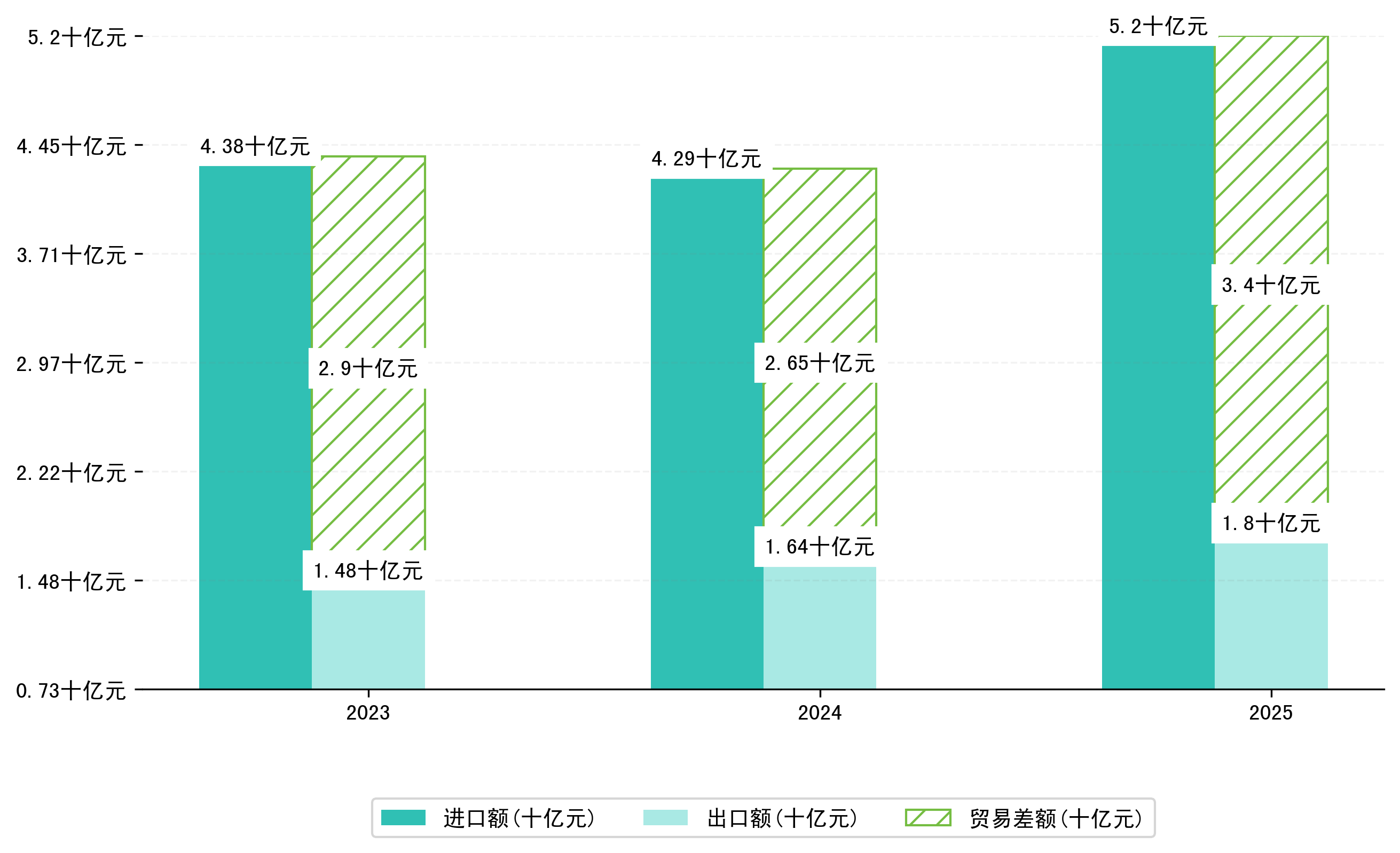以人民币计,2025年1-5月池州市贸易差额为33,9573,6031万元(贸易逆差),相比上年同期减少了7,4507,6256万元,同比减少28.11%。