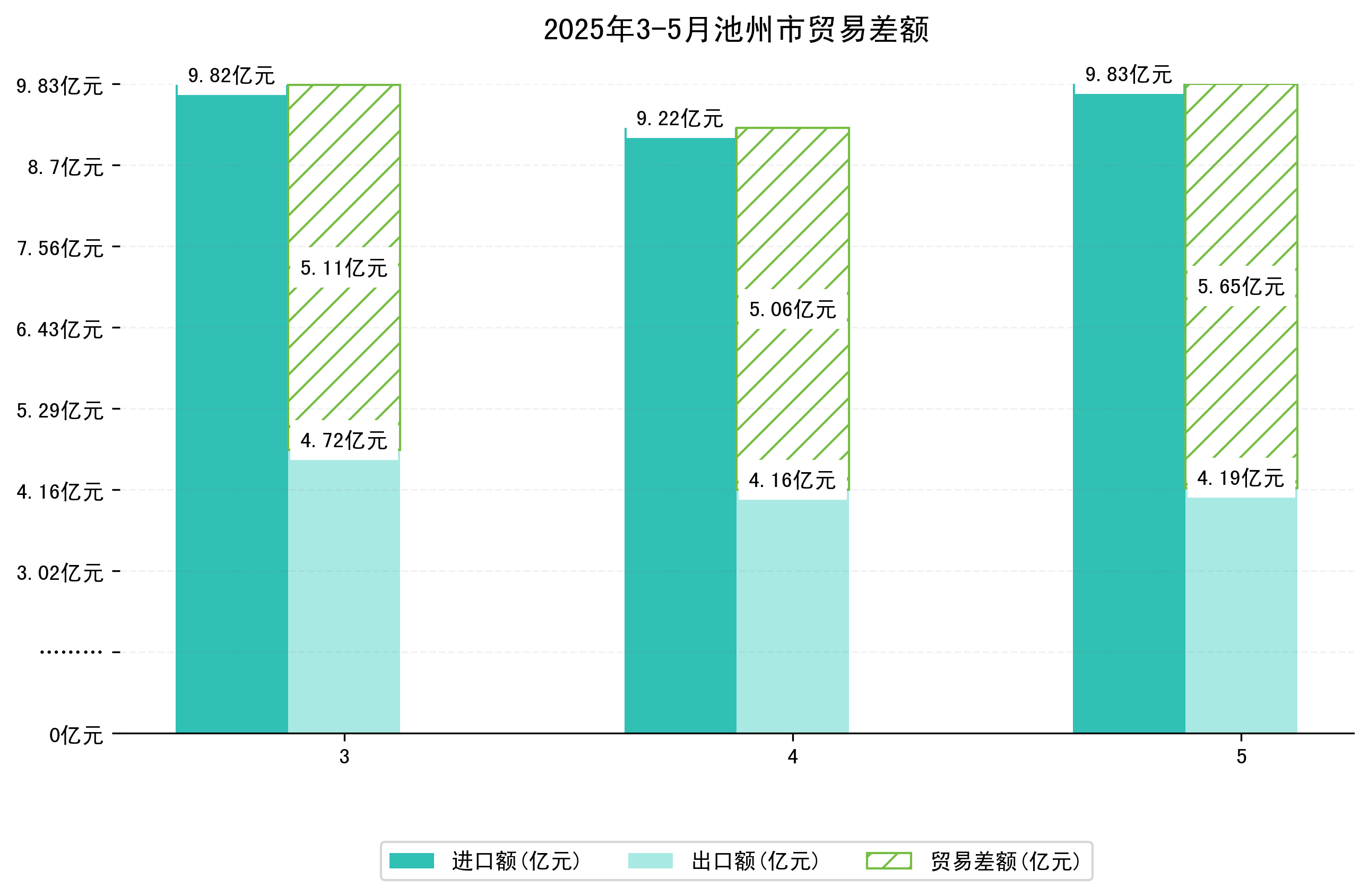 一、2025年5月池州市单月出口总额及进出口差额统计分析