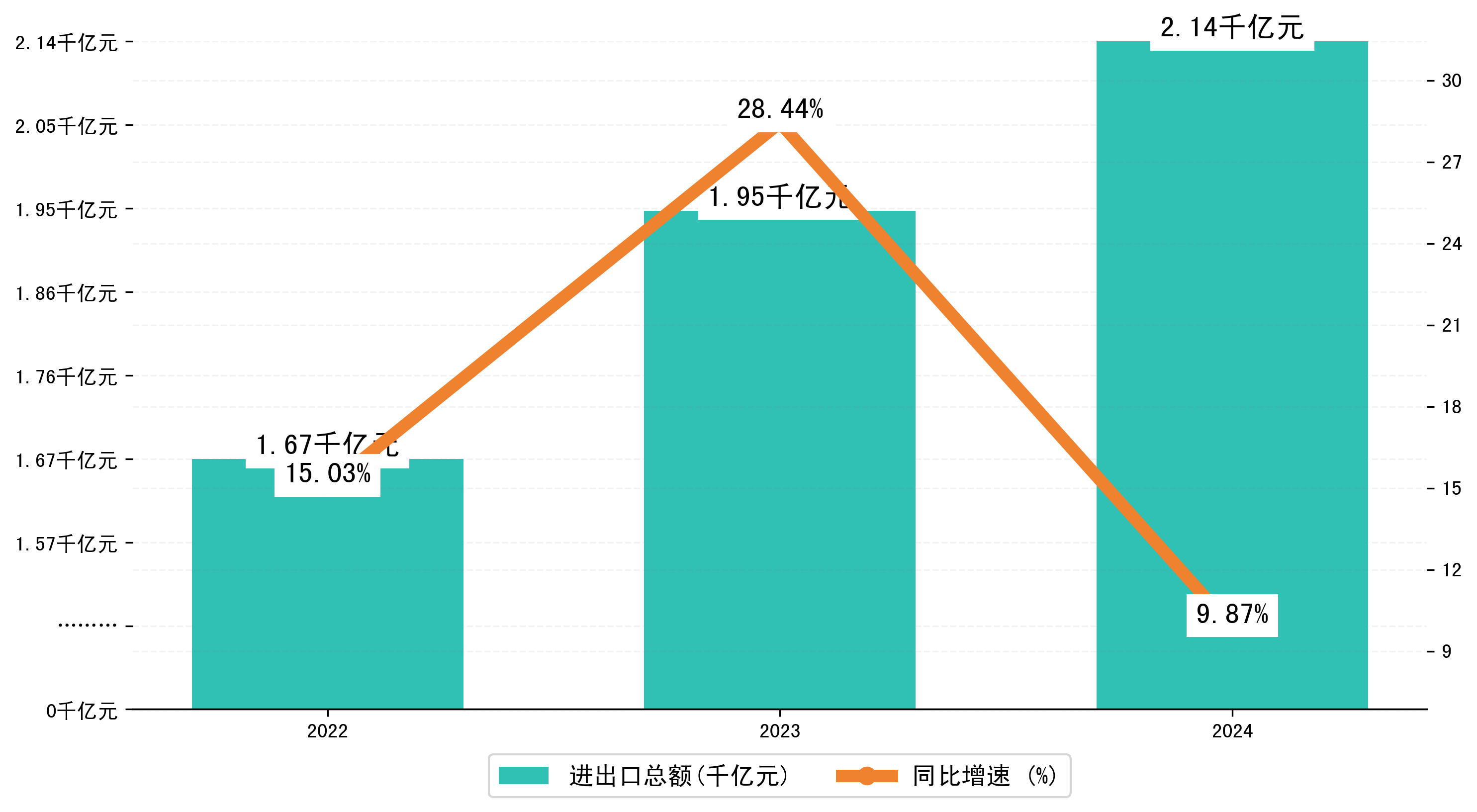 以人民币计,2024年1-10月崇左市进出口总额为2140,1939.8906万元,相比上年同期增加了192,2777.8186万元,同比增加了16.20%。