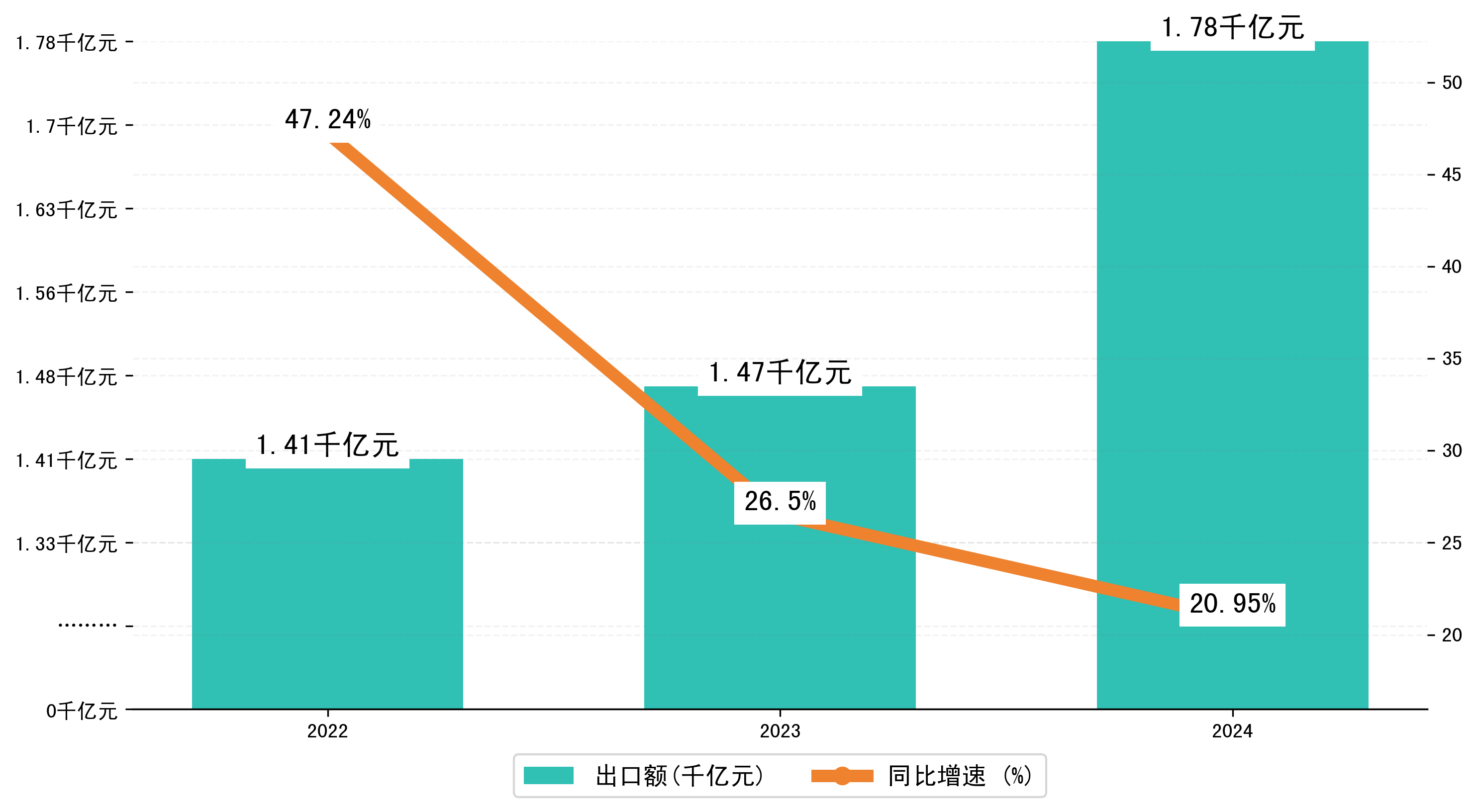以人民币计,2024年1-10月崇左市出口额为1778,9641.5509万元,相比上年同期增加了308,1224.1597万元,同比增加了25.30%。