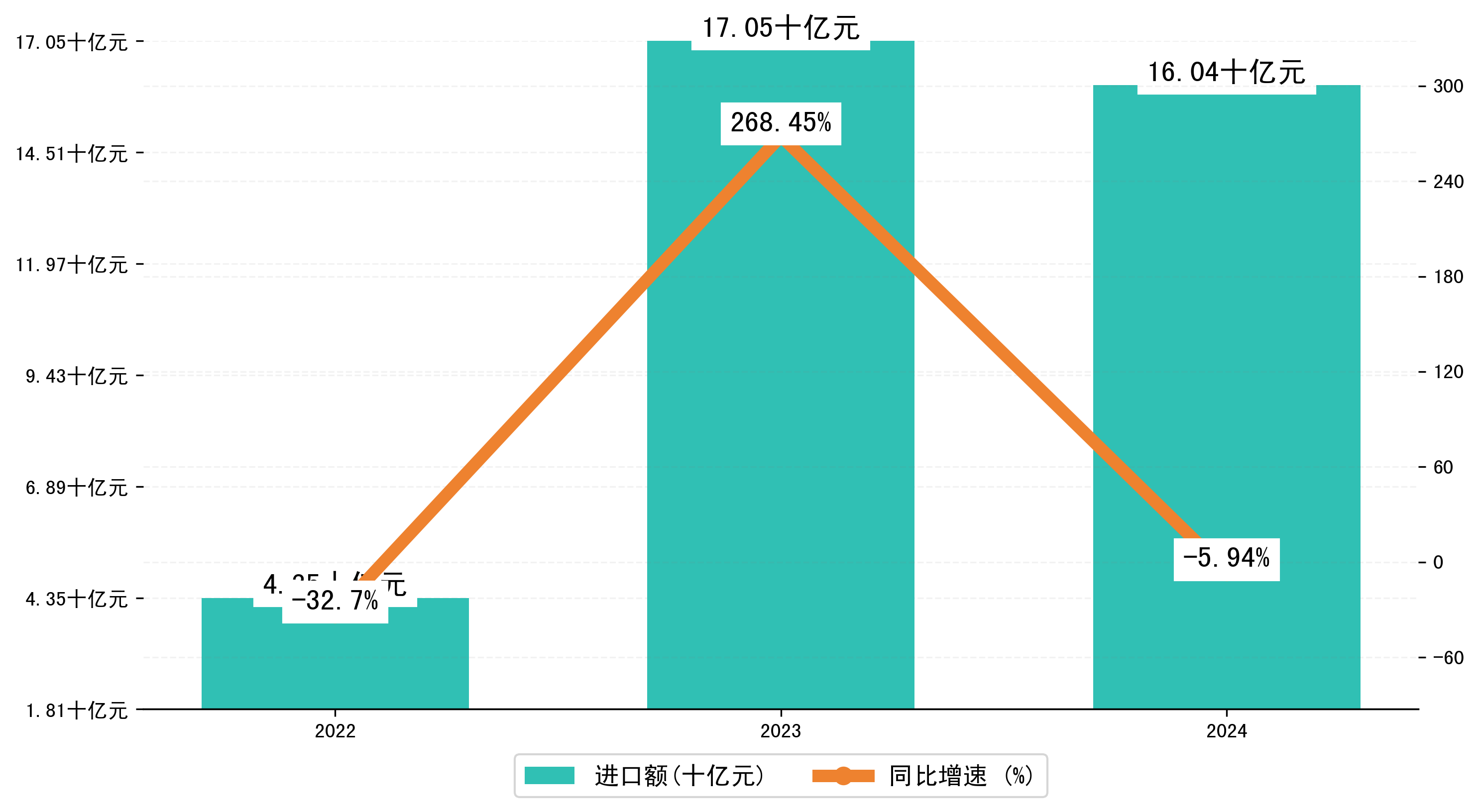 以美元计,2024年1-4月崇左市进口额为22,5720.2985万美元,相比上年同期减少了2,2776.5849万美元,同比增加7.10%。