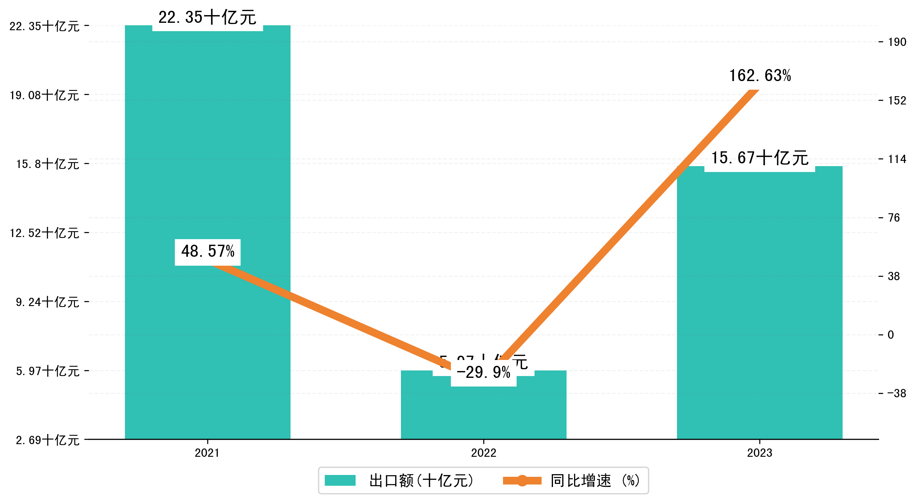 以美元计,2023年1-1月崇左市出口额为22,4655.9945万美元,相比上年同期增加了13,1072.2361万美元,同比增加139.80%。
