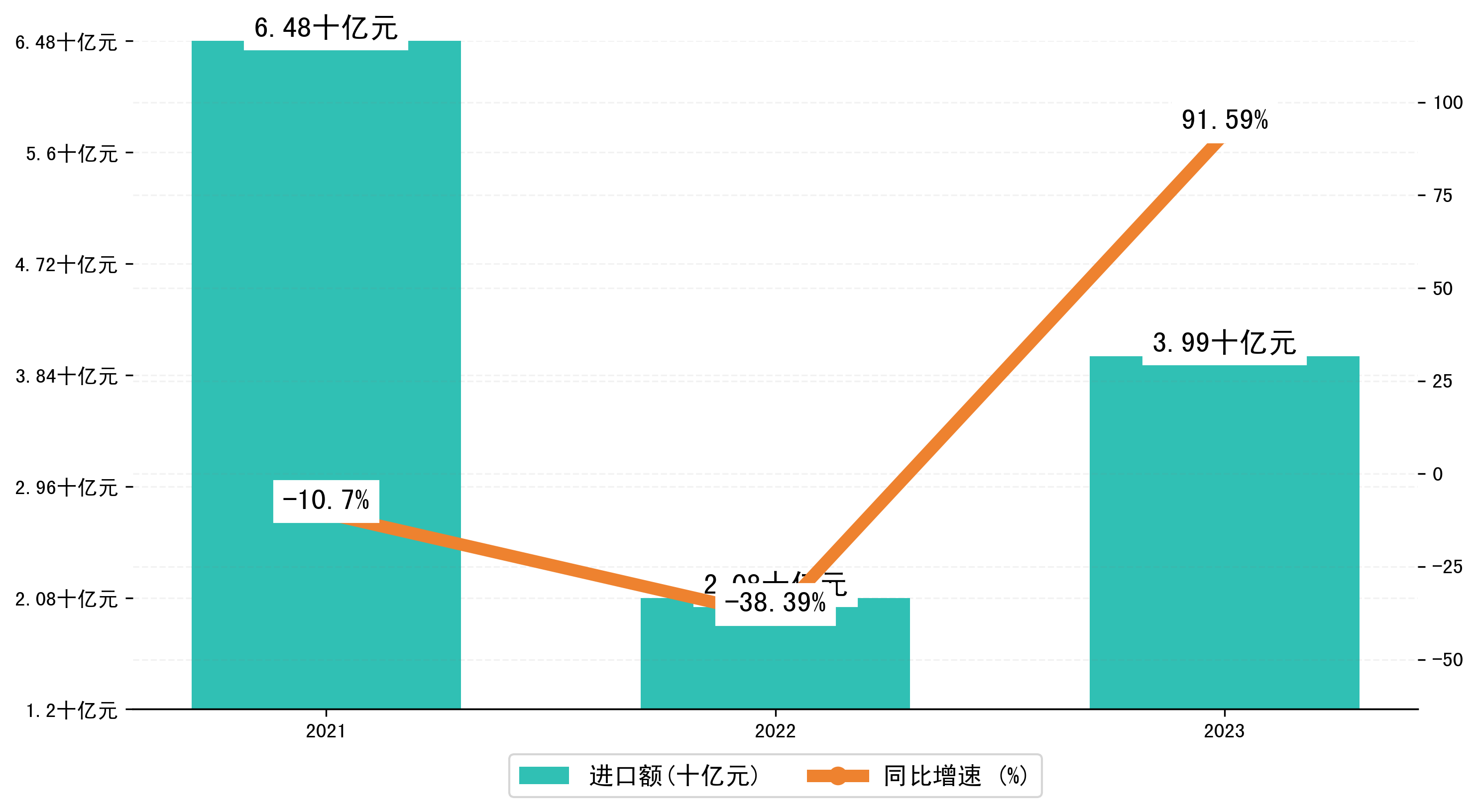 以人民币计,2023年1月崇左市进口额为39,9181.726万元,相比上月减少了9053.4883万元;相比上年同期增加了19,0829.6455万元,同比增加了91.20%。