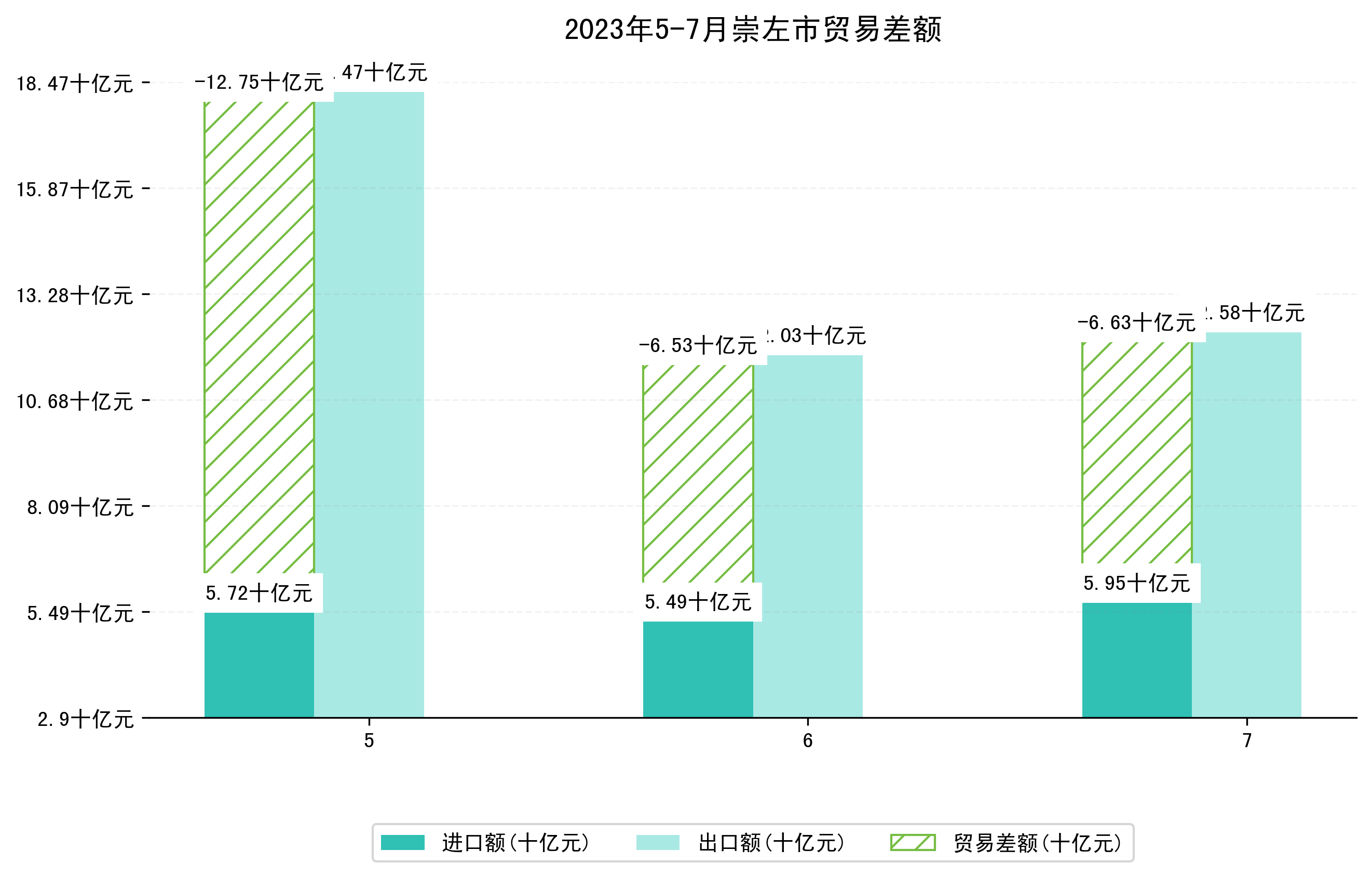 以美元计,2023年1-7月崇左市贸易差额为89,0690,1961万美元(贸易顺差),相比上年同期增加了10,9517,0117万美元,同比增加14.02%。