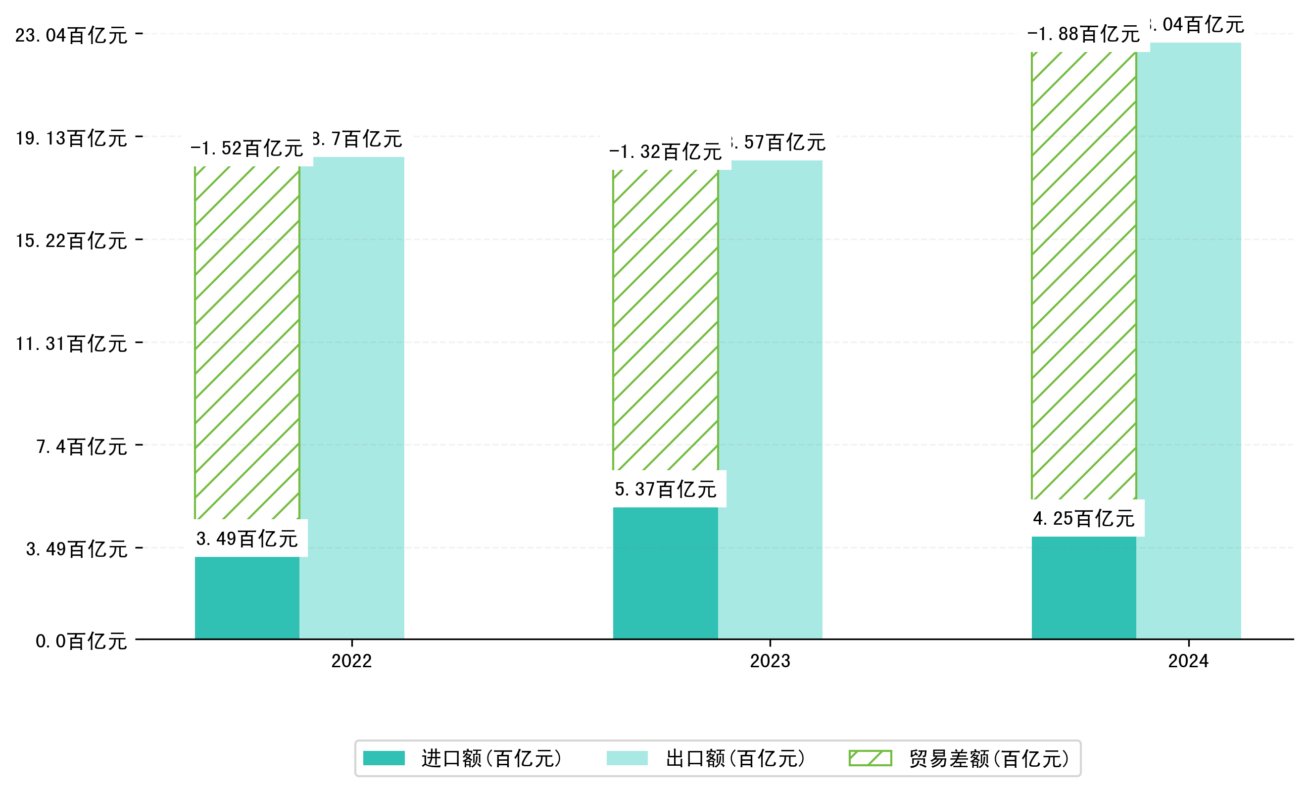 以人民币计,2024年1-12月崇左市出口额为2304,2145.597万元,相比上年同期增加了447,6349.226万元,同比增加了24.10%。