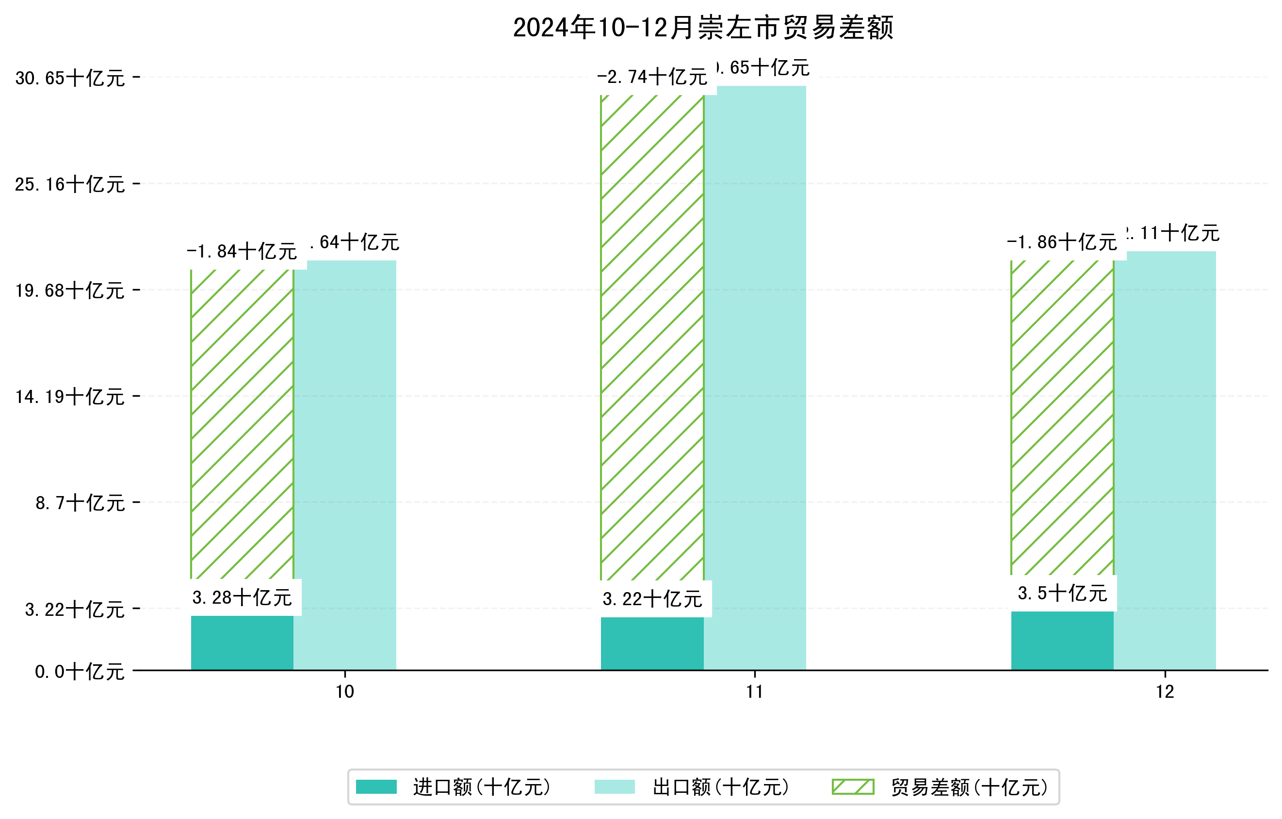 2024年12月崇左市进出口总额及进出口差额统计分析