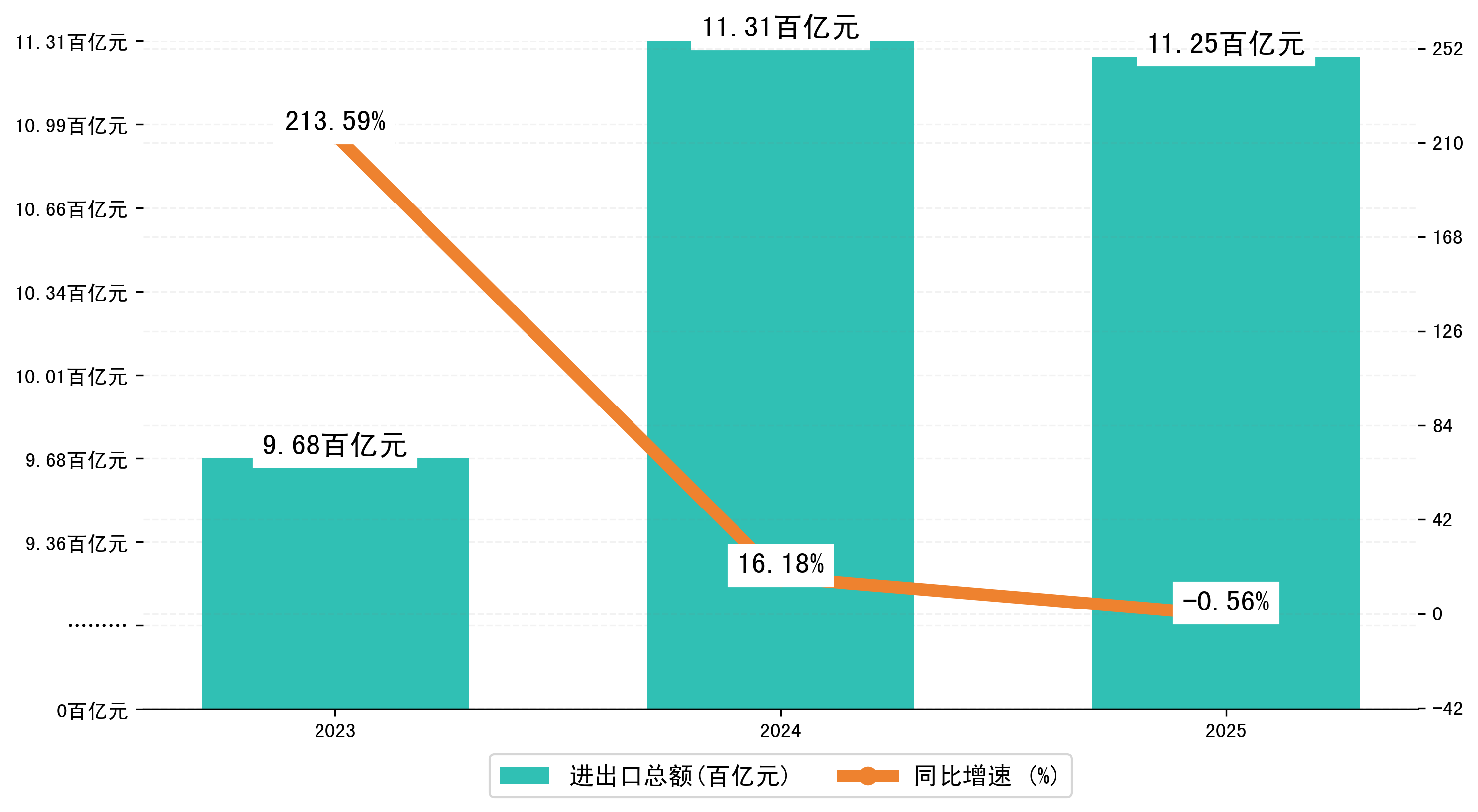 以人民币计,2025年1-5月崇左市进出口总额为1125,1160.8776万元,相比上年同期减少了6,3460.8814万元,同比增加了1.10%。