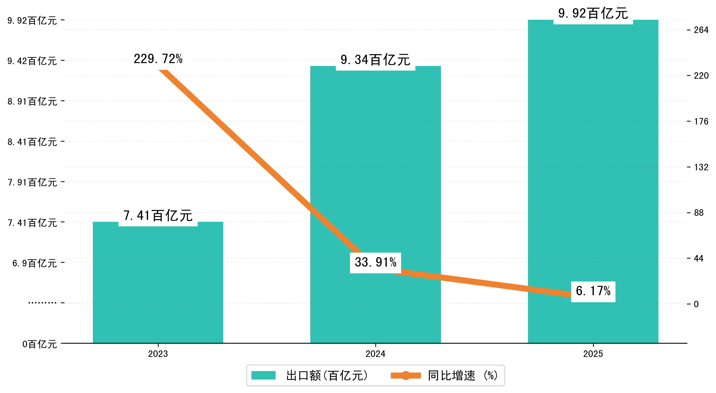 以人民币计,2025年1-5月崇左市出口额为991,7408.2022万元,相比上年同期增加了57,6585.1327万元,同比增加了8.30%。