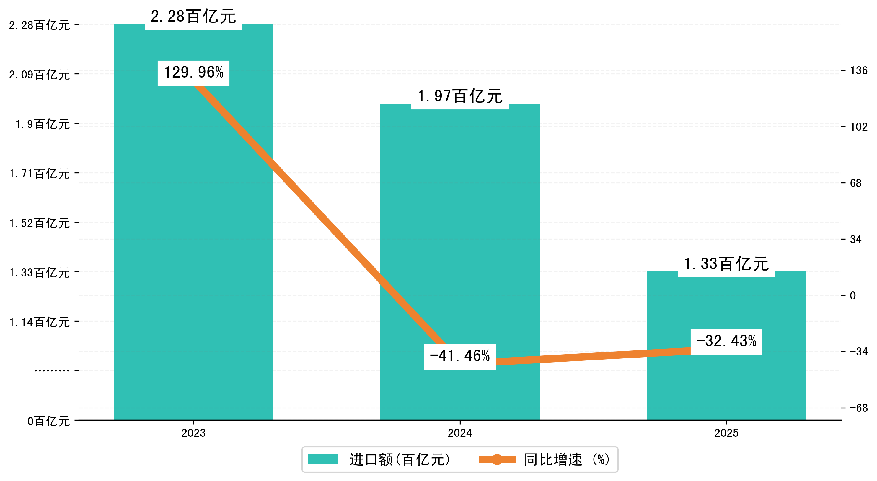 以人民币计,2025年1-5月崇左市进口额为133,3752.6754万元,相比上年同期减少了64,0046.0141万元,同比减少了-32.20%。