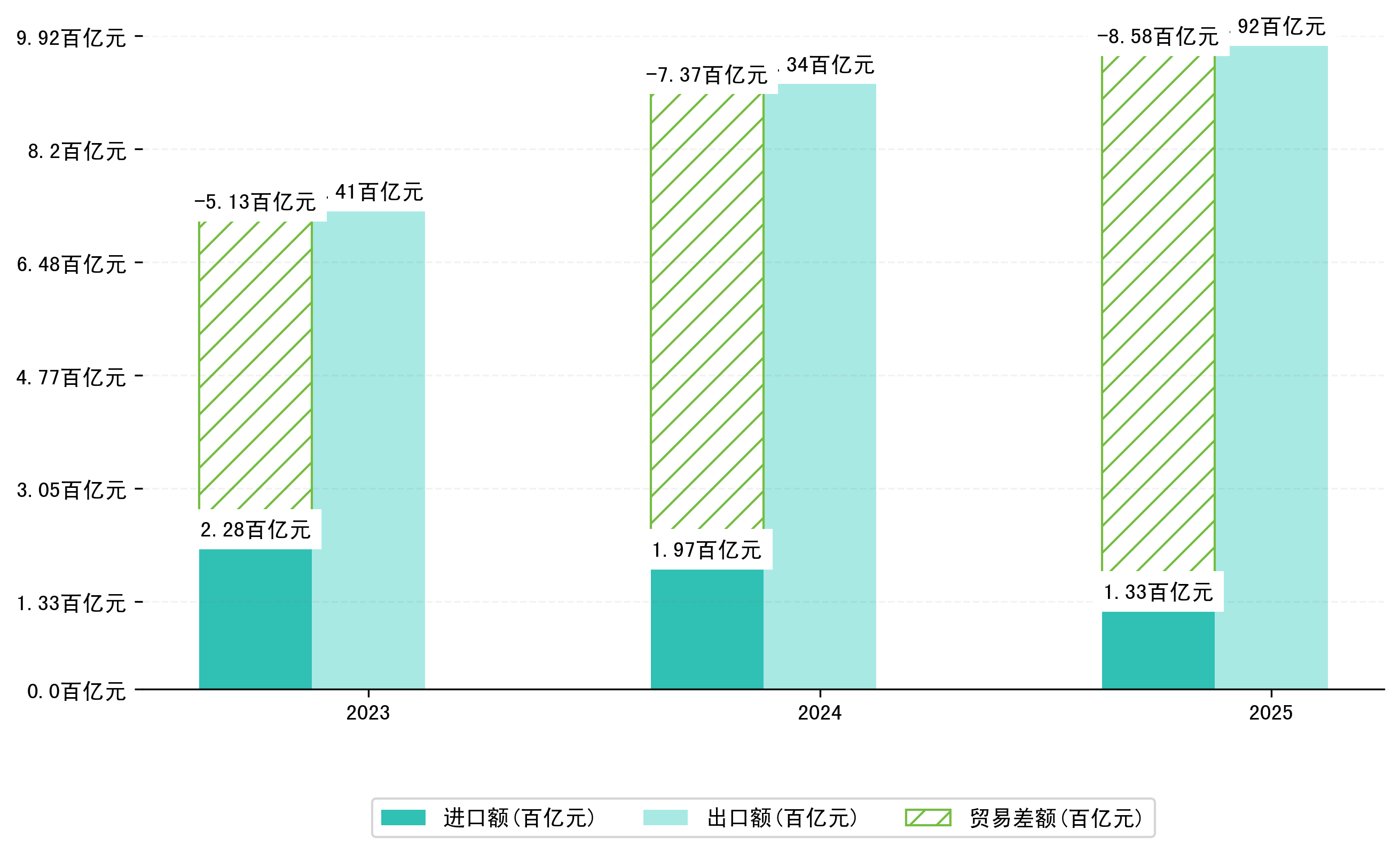 以人民币计,2025年5月崇左市贸易差额为140,3664,7293万元(贸易顺差),相比上月减少了34,5892,5963万元,即4,9162,2709万美元;相比上年同期减少了40,8680,9151万元,同比减少-22.55%。