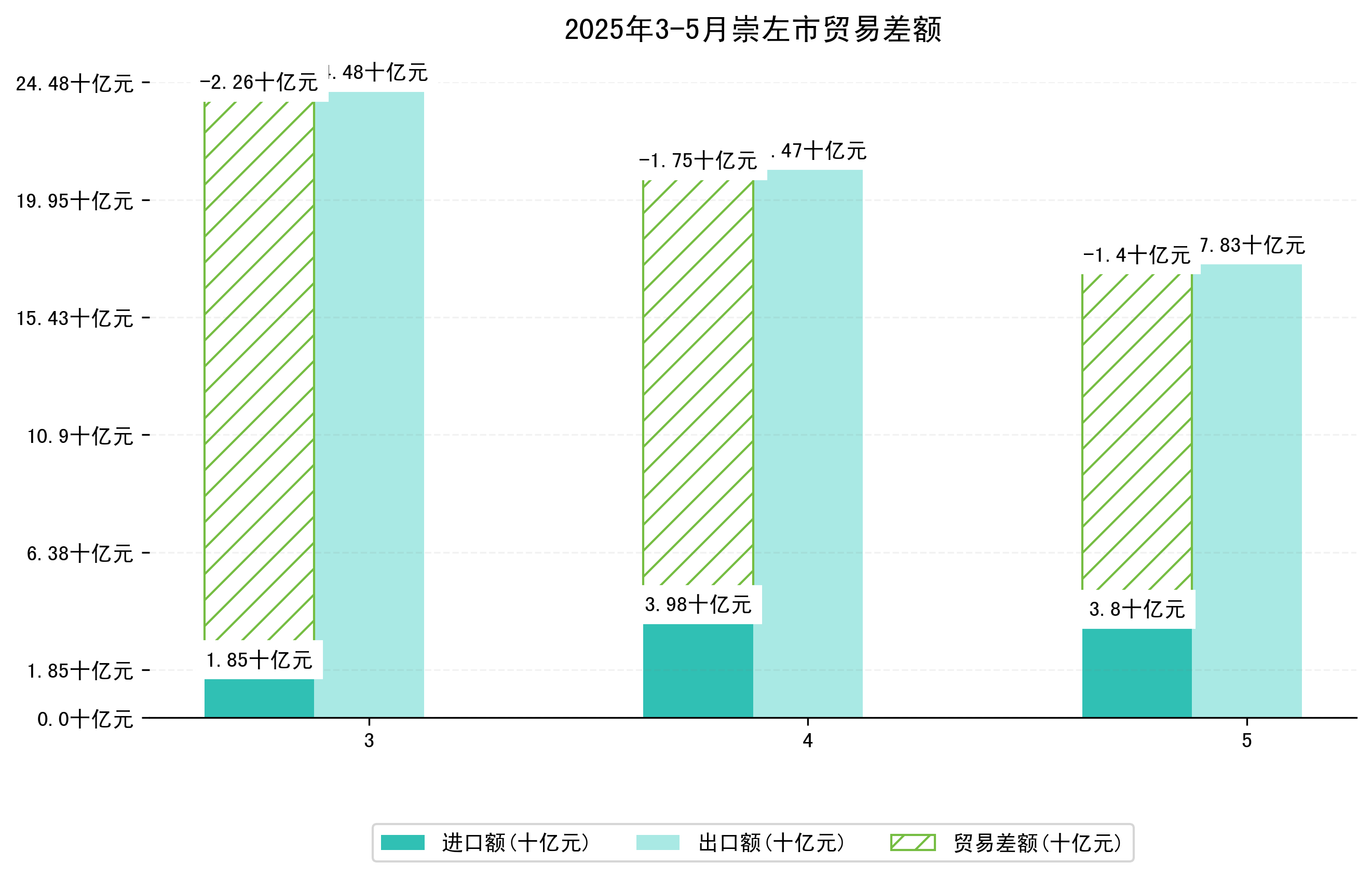 一、2025年5月崇左市单月出口总额及进出口差额统计分析