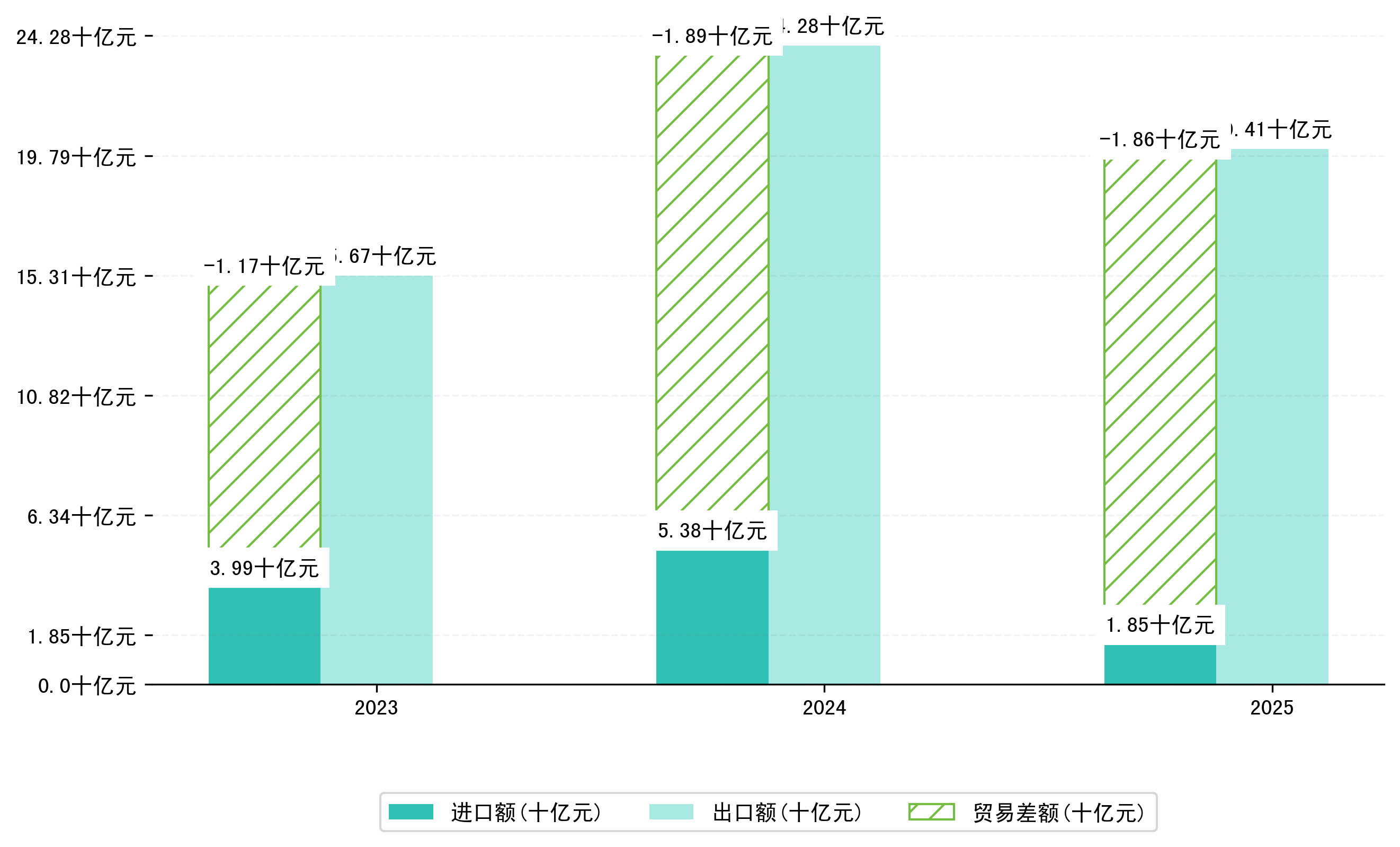 以美元计,2025年1-1月崇左市贸易差额为25,8176,1327万美元(贸易顺差),相比上年同期减少了7905,3669万美元,同比减少-2.97%。