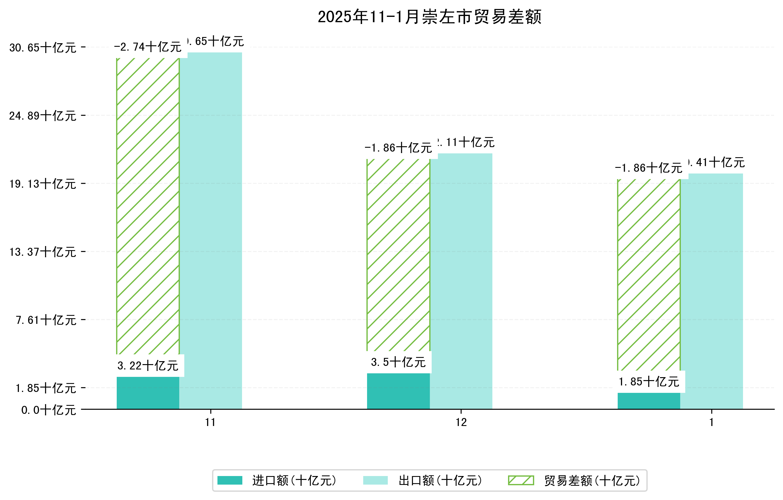 一、2025年1月崇左市单月出口总额及进出口差额统计分析