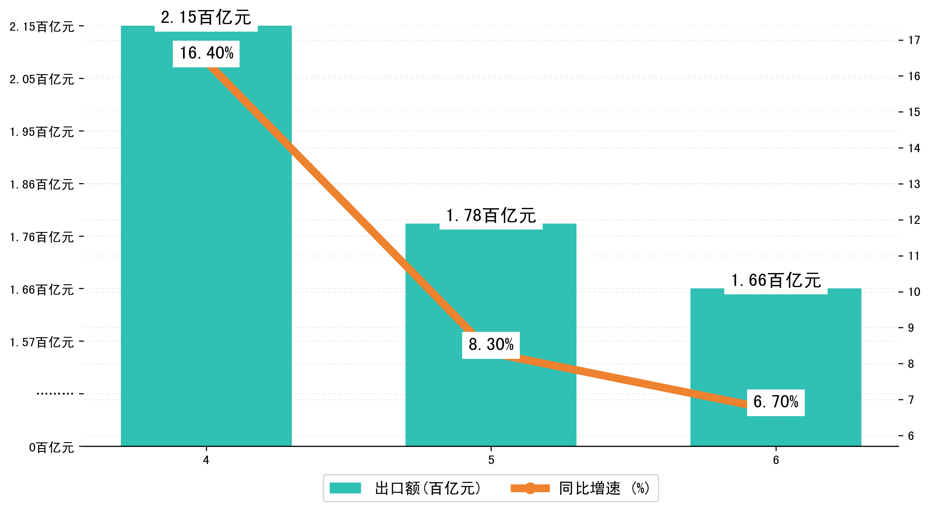 以人民币计,2025年6月崇左市出口额为166,4467.0101万元,相比上月减少了11,9018.2912万元;相比上年同期减少了7,0081.0668万元,同比增加了6.70%。