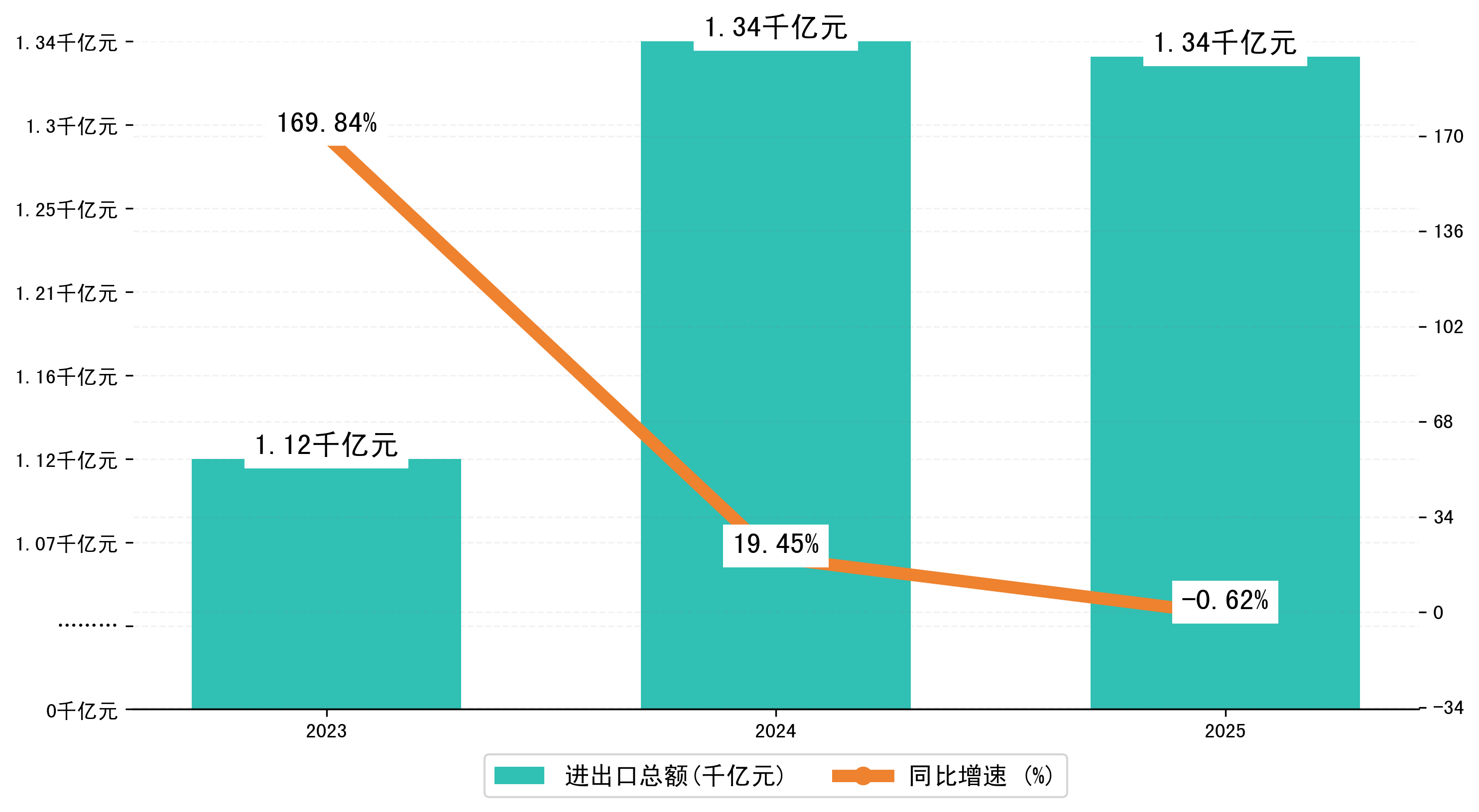 以人民币计,2025年1-6月崇左市进出口总额为1335,4137.382万元,相比上年同期减少了8,3438.9258万元,同比增加了1.50%。