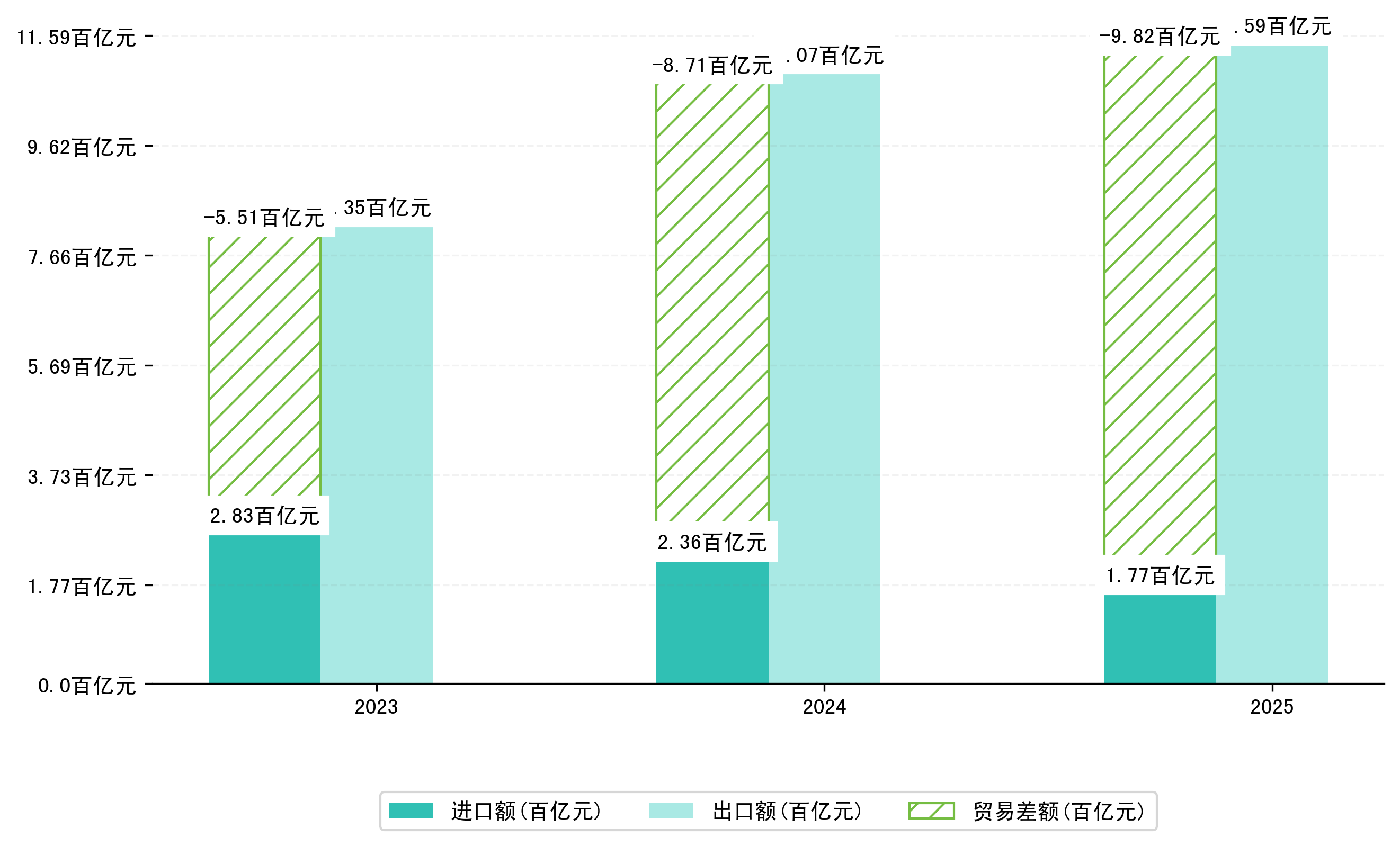以美元计,2025年6月崇左市贸易差额为17,1828,7479万美元(贸易顺差),相比上月减少了2,2910,2183万美元;相比上年同期减少了1,8504,4208万美元,同比减少-9.72%。