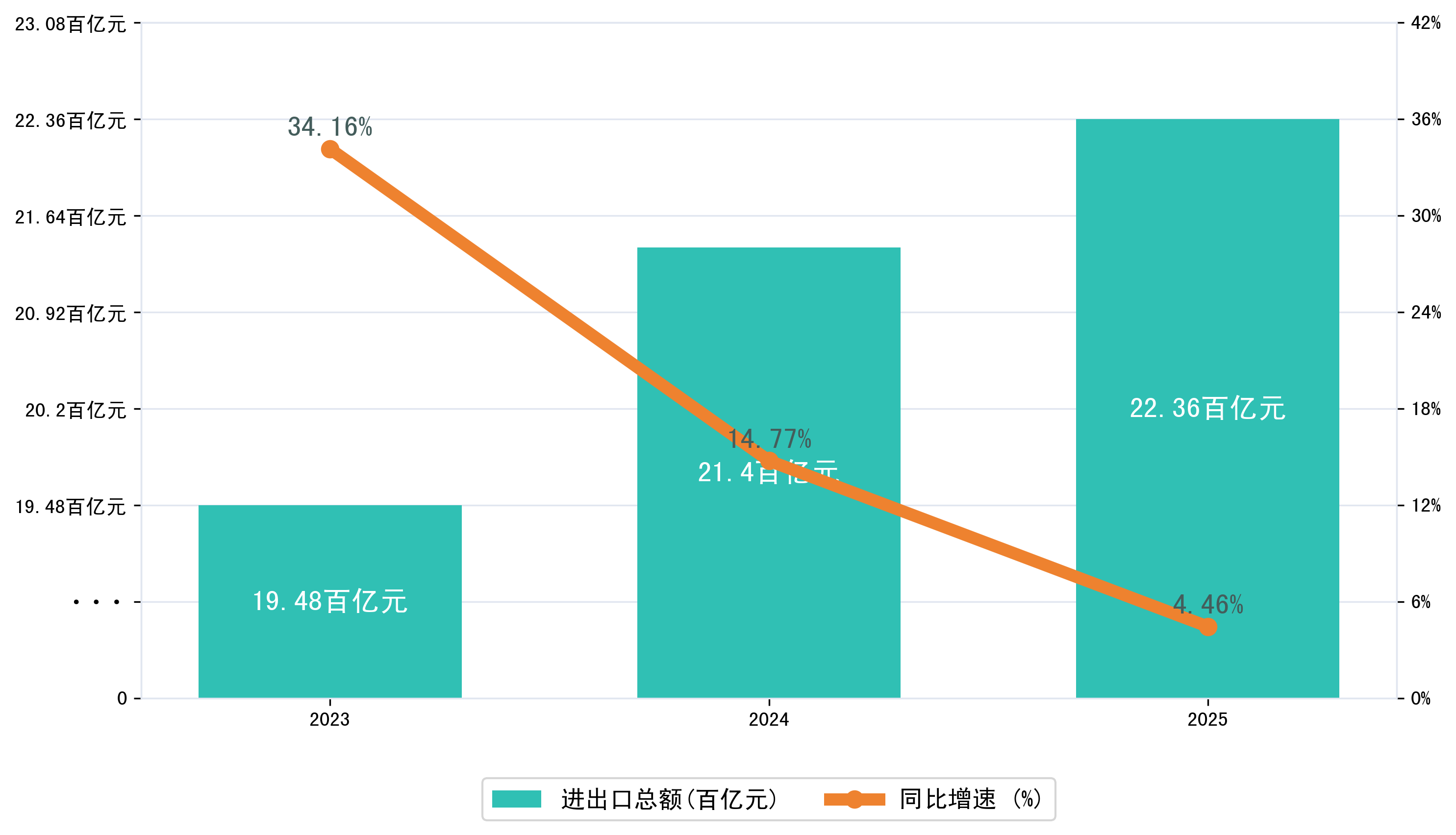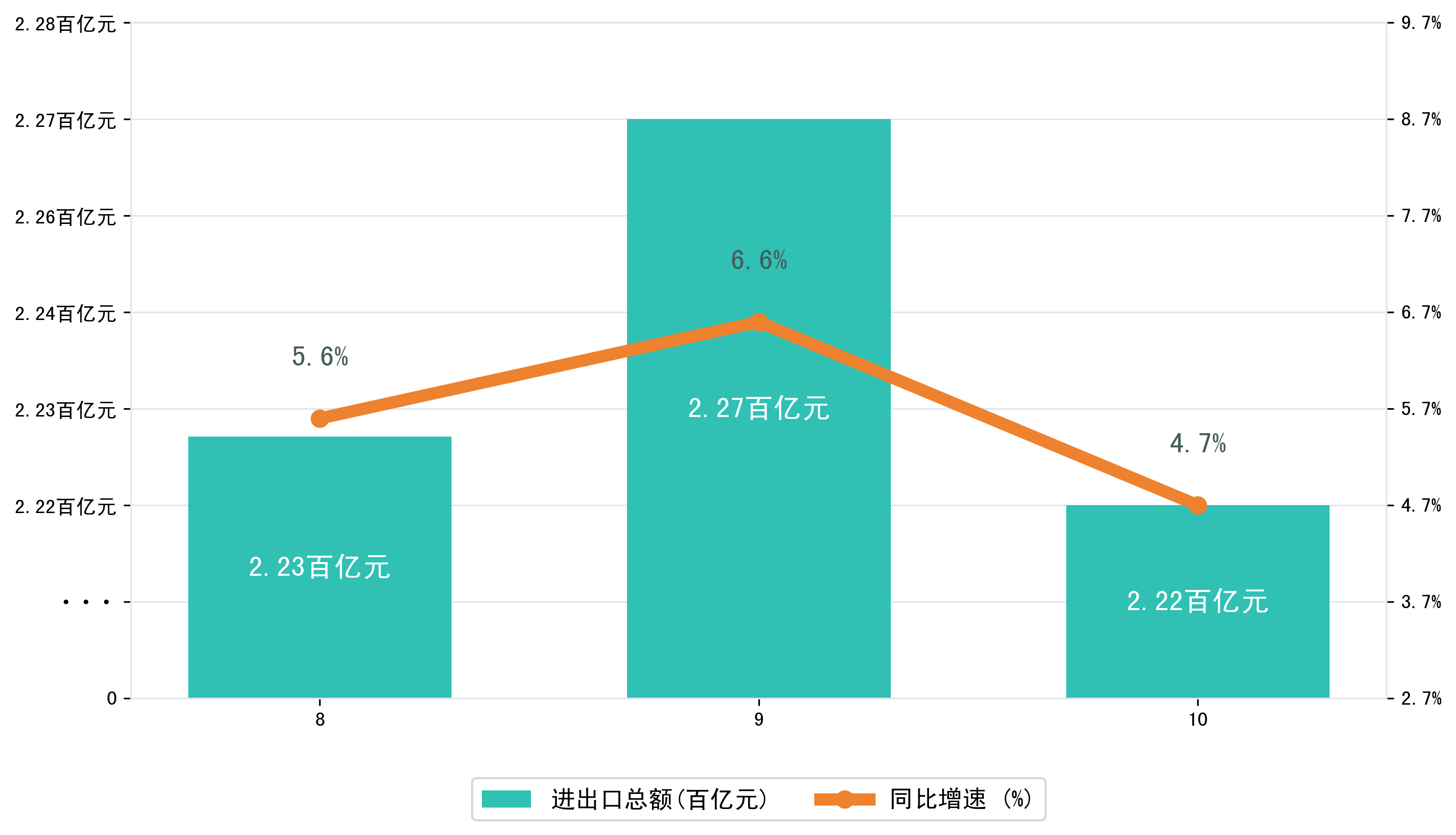 以人民币计,2025年1-10月崇左市进出口总额为2235,6271.1056万元,相比上年同期增加了95,4331.215万元,同比增加了4.70%。