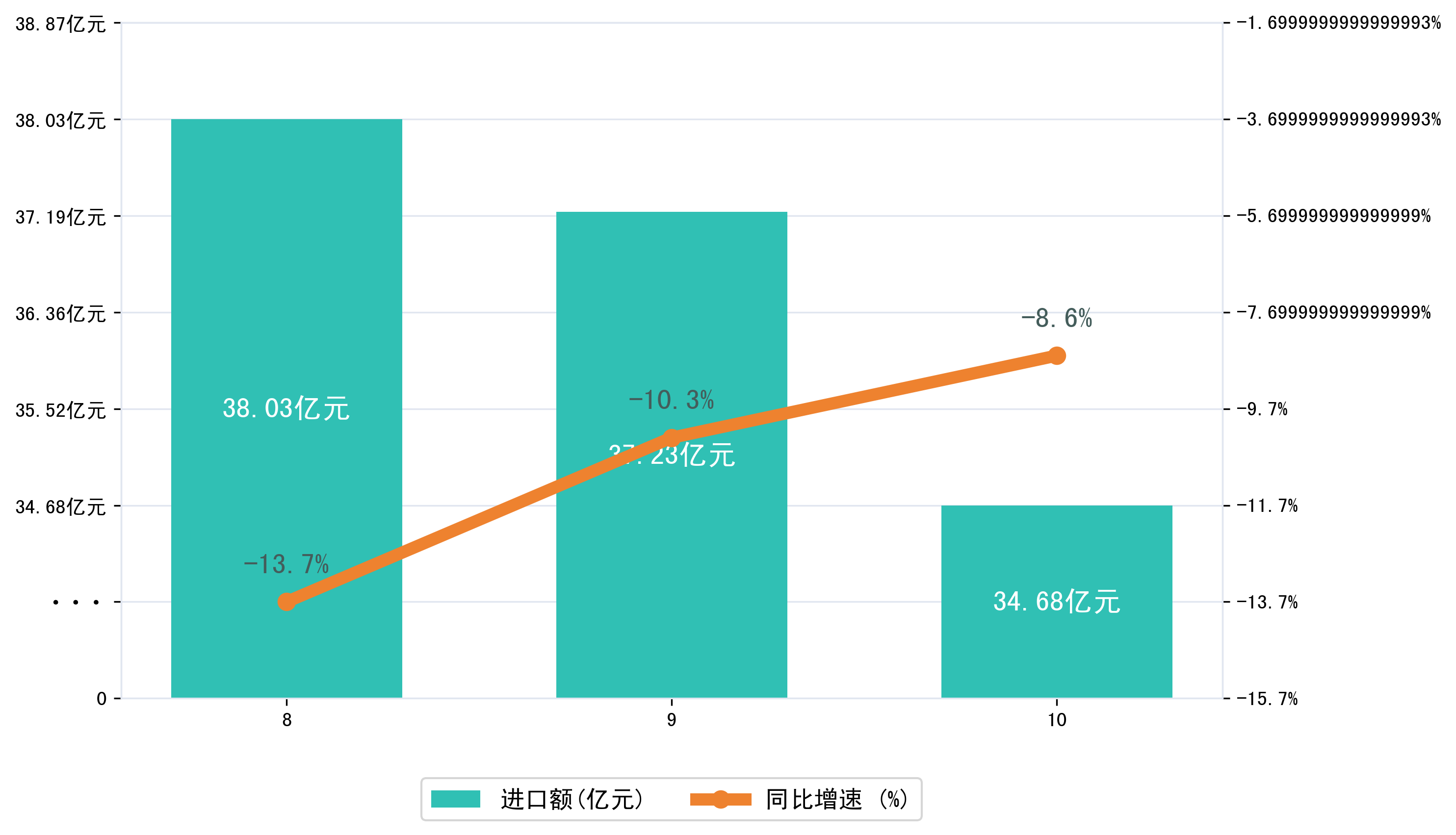 (图三:2025年8-10月崇左市进口额)