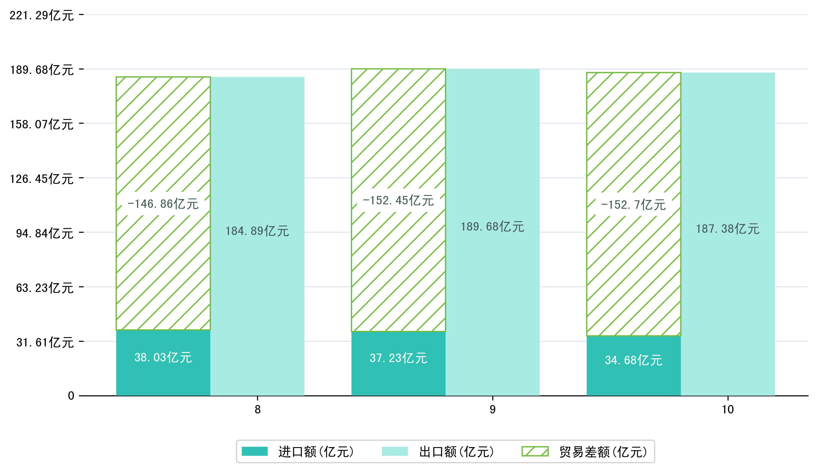 (图一:2025年8-10月崇左市进出口总额)