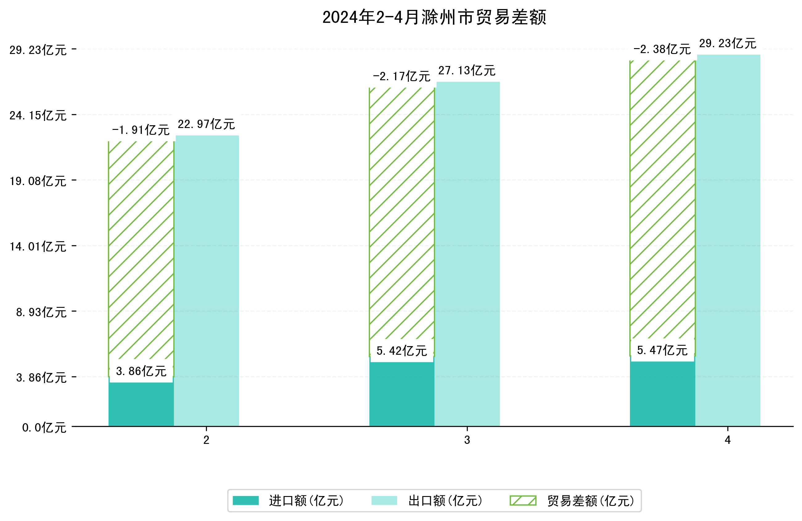 (图四:2024年2-4月滁州市贸易差额)