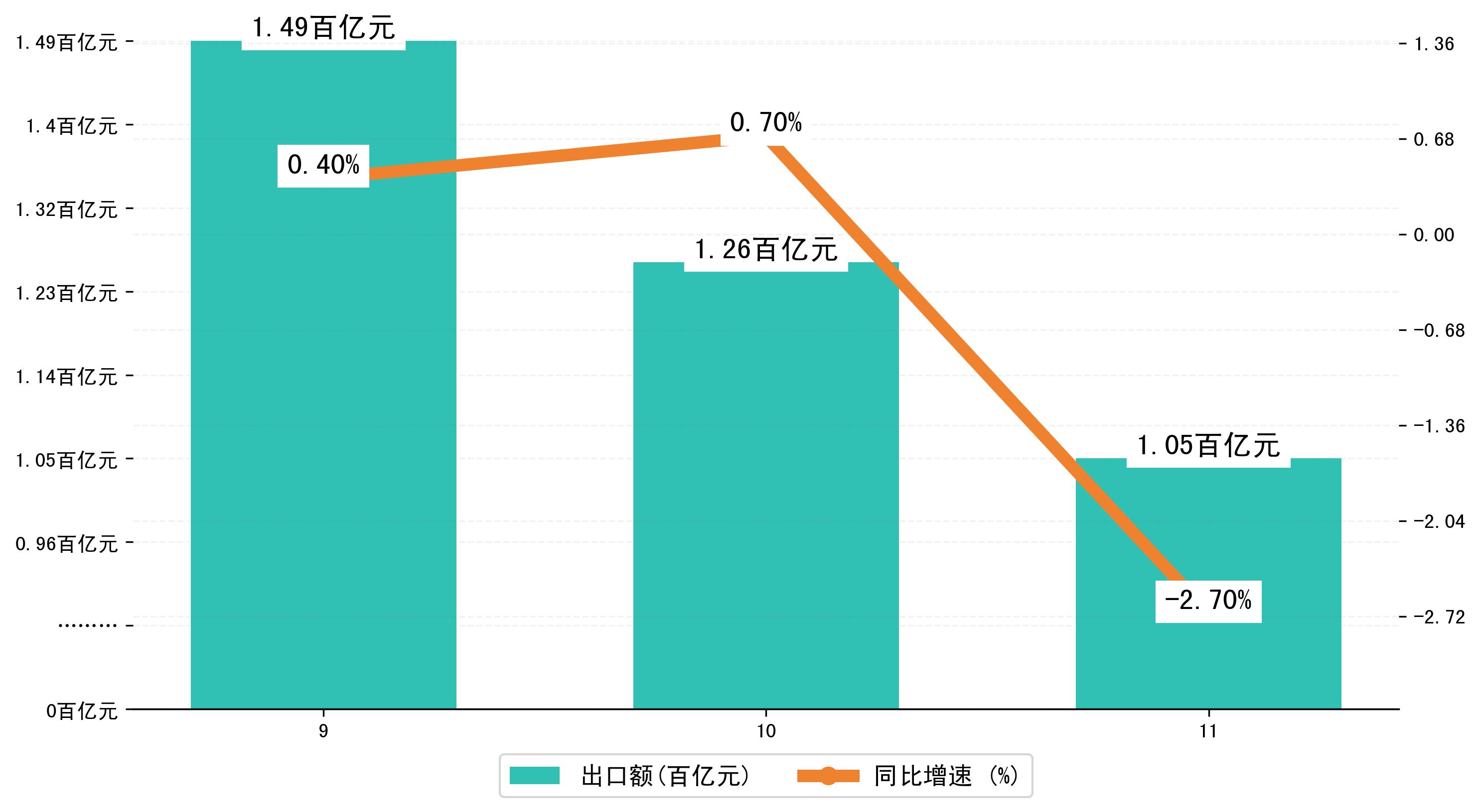 (图二:2023年9-11月湖州市出口额)