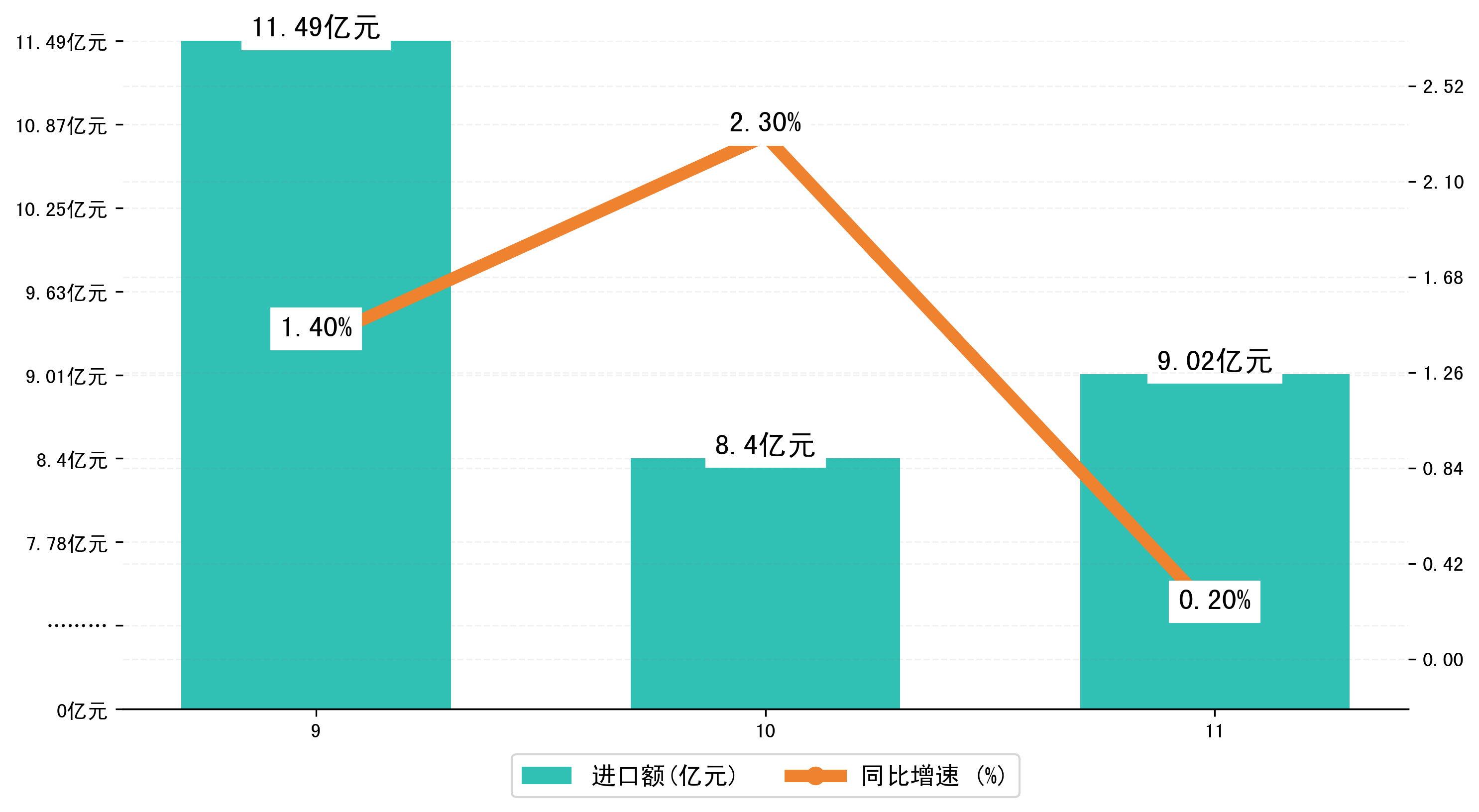 (图三:2023年9-11月湖州市进口额)