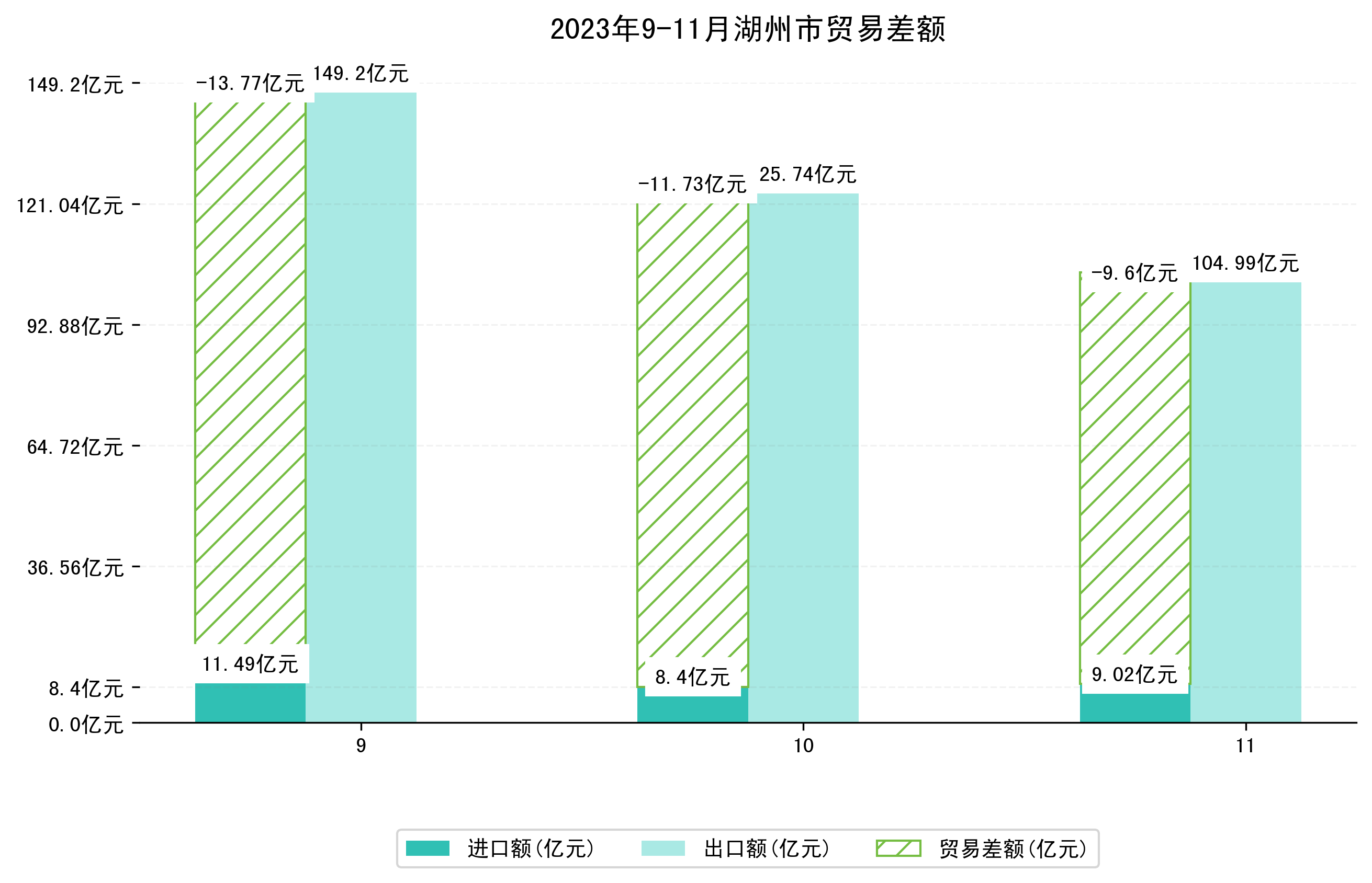 (图四:2023年9-11月湖州市贸易差额)