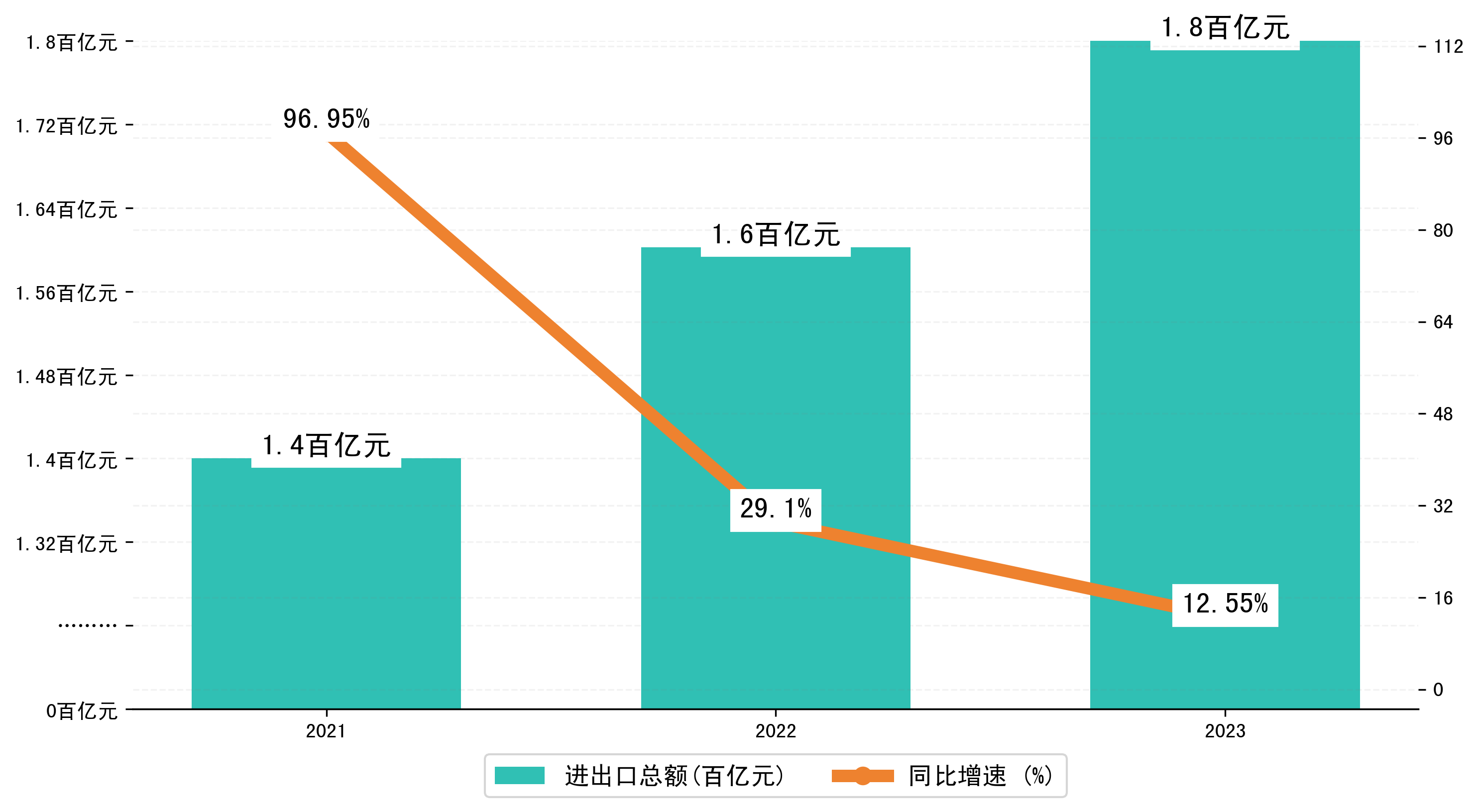 以人民币计,2023年1-5月滁州市进出口总额为180,4288.2663万元,相比上年同期增加了20,1174.0499万元,同比增加了12.60%。