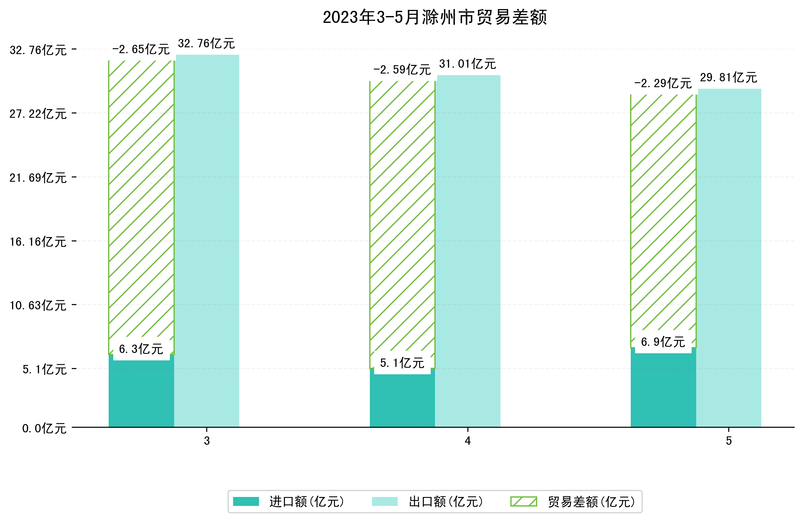 2023年5月滁州市进出口总额及进出口差额统计分析