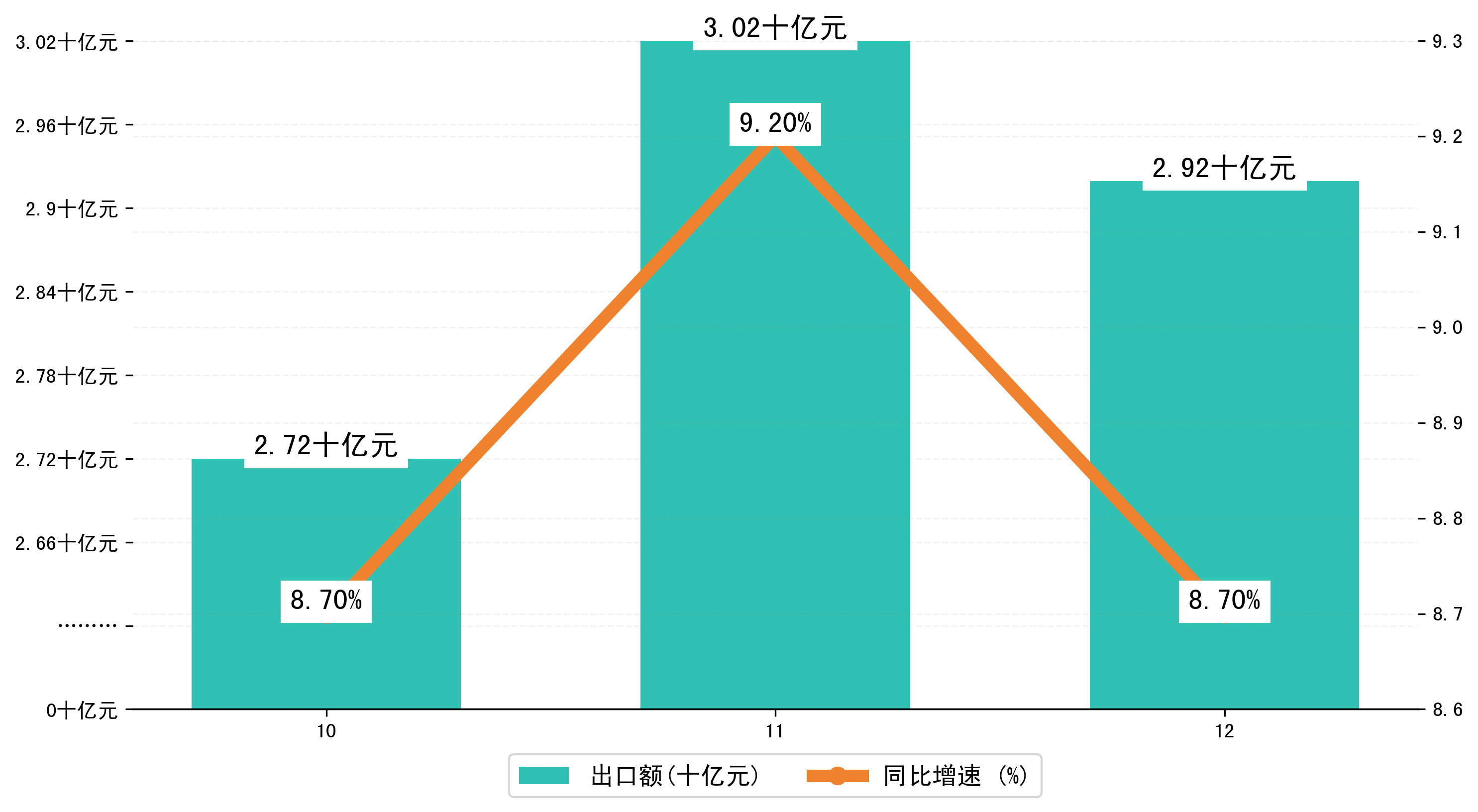以人民币计,2023年12月滁州市贸易差额为23,3586,6282万元(贸易顺差),相比上月减少了2,5656,0101万元,即3479,8576万美元;相比上年同期增加了1,1132,6544万元,同比增加5.0%。