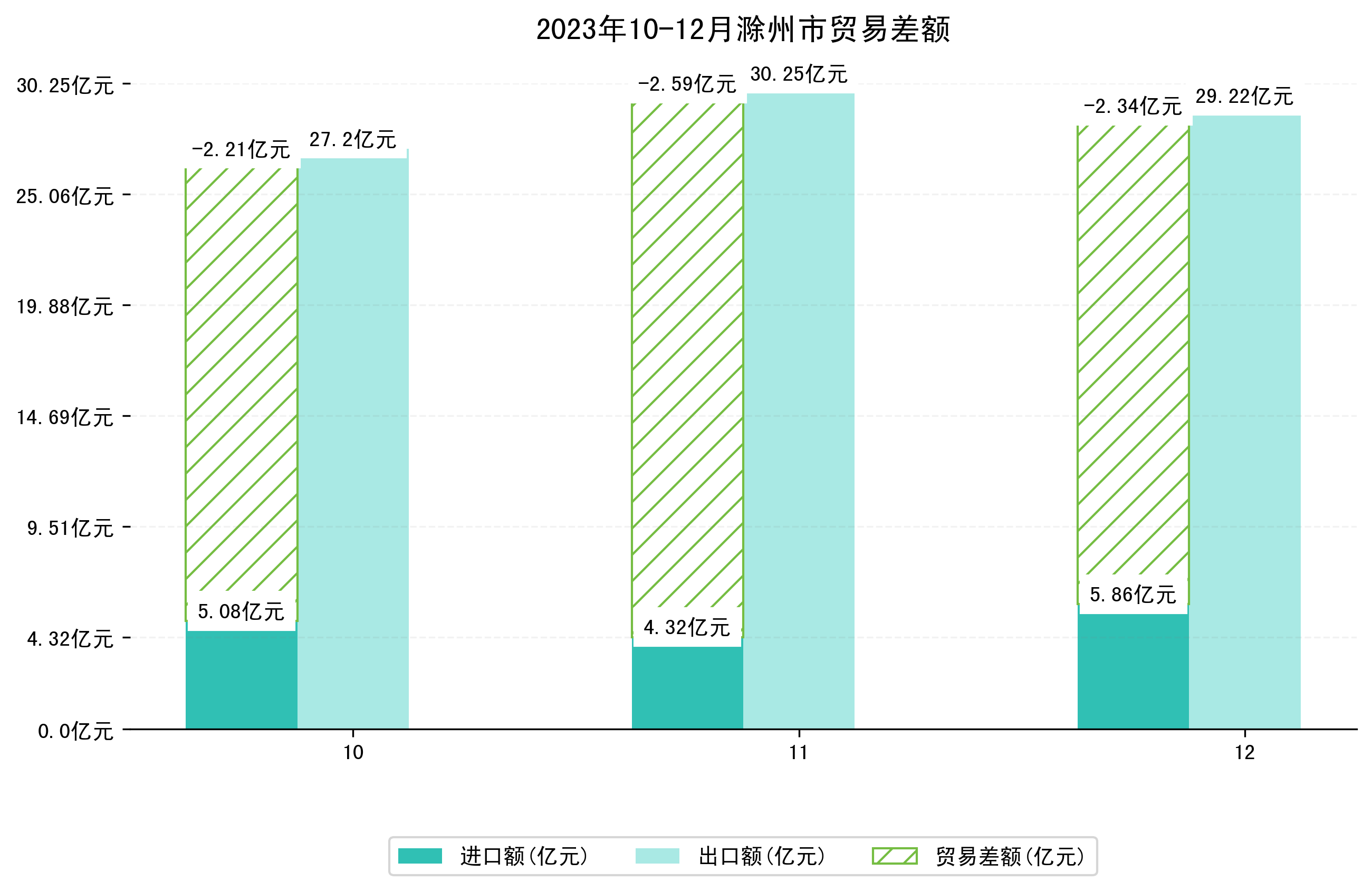 2023年12月滁州市进出口总额及进出口差额统计分析