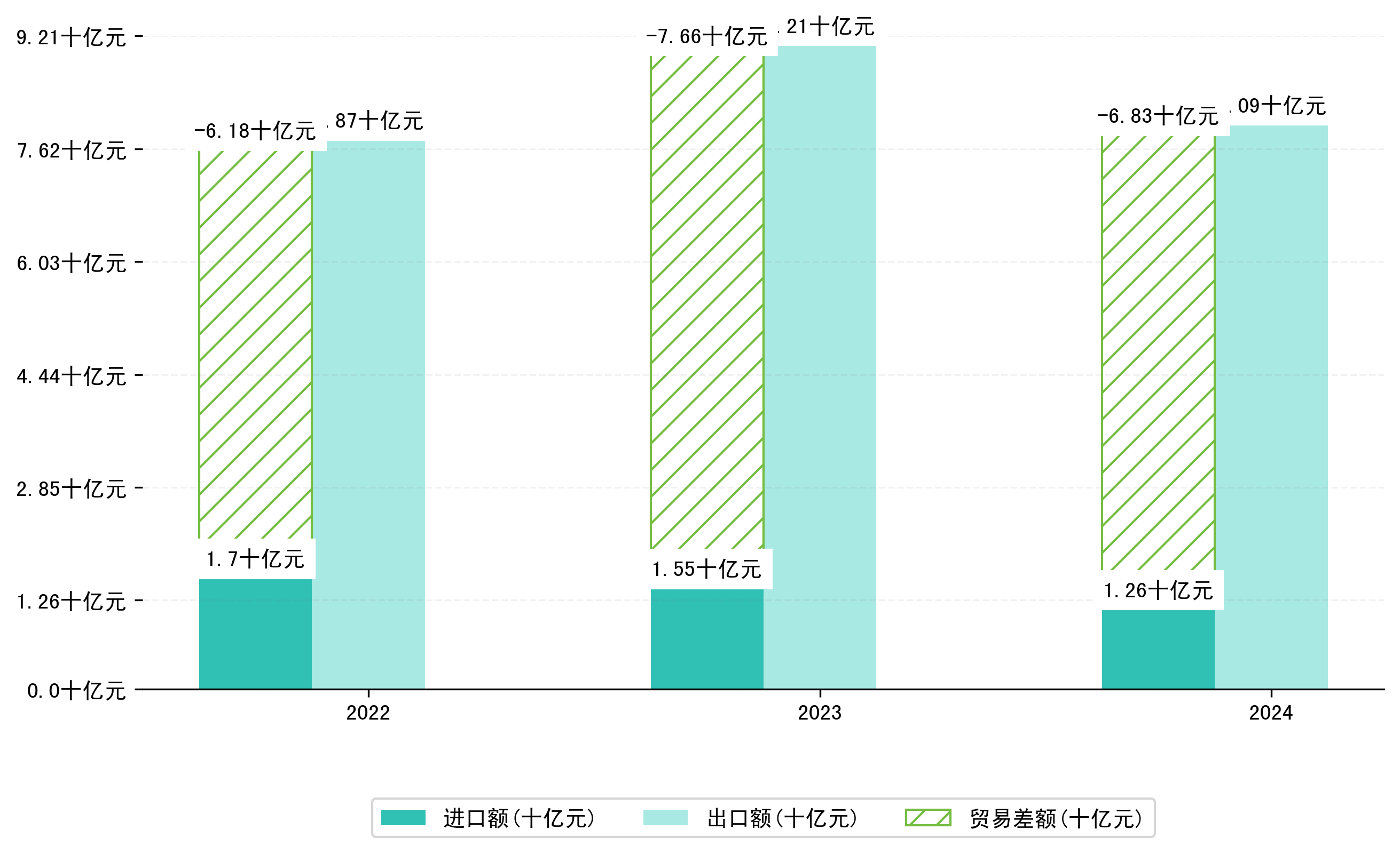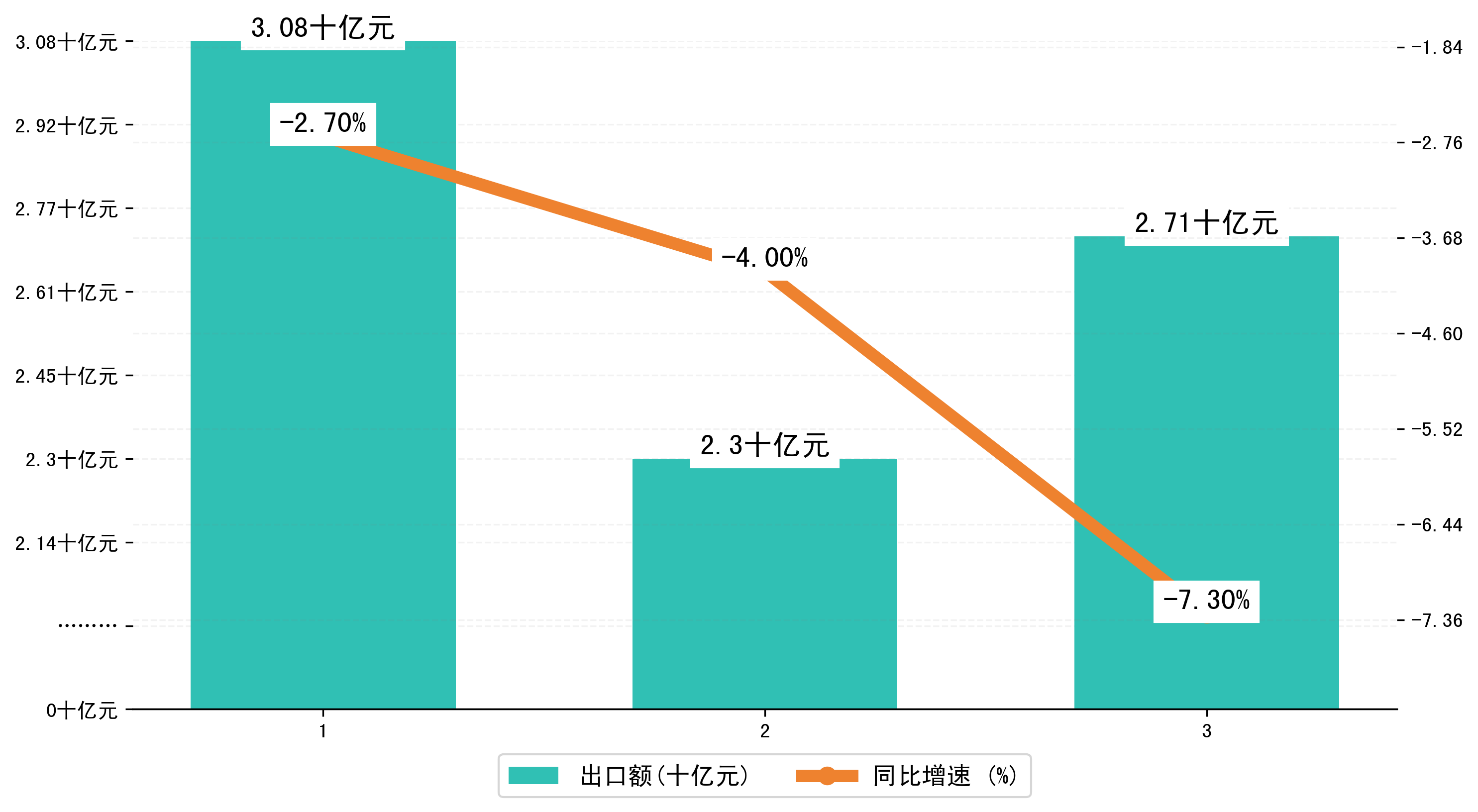 以美元计,2024年1-3月滁州市贸易差额为9,6108,8644万美元(贸易顺差),相比上年同期减少了1,5369,1030万美元,同比减少-13.79%。