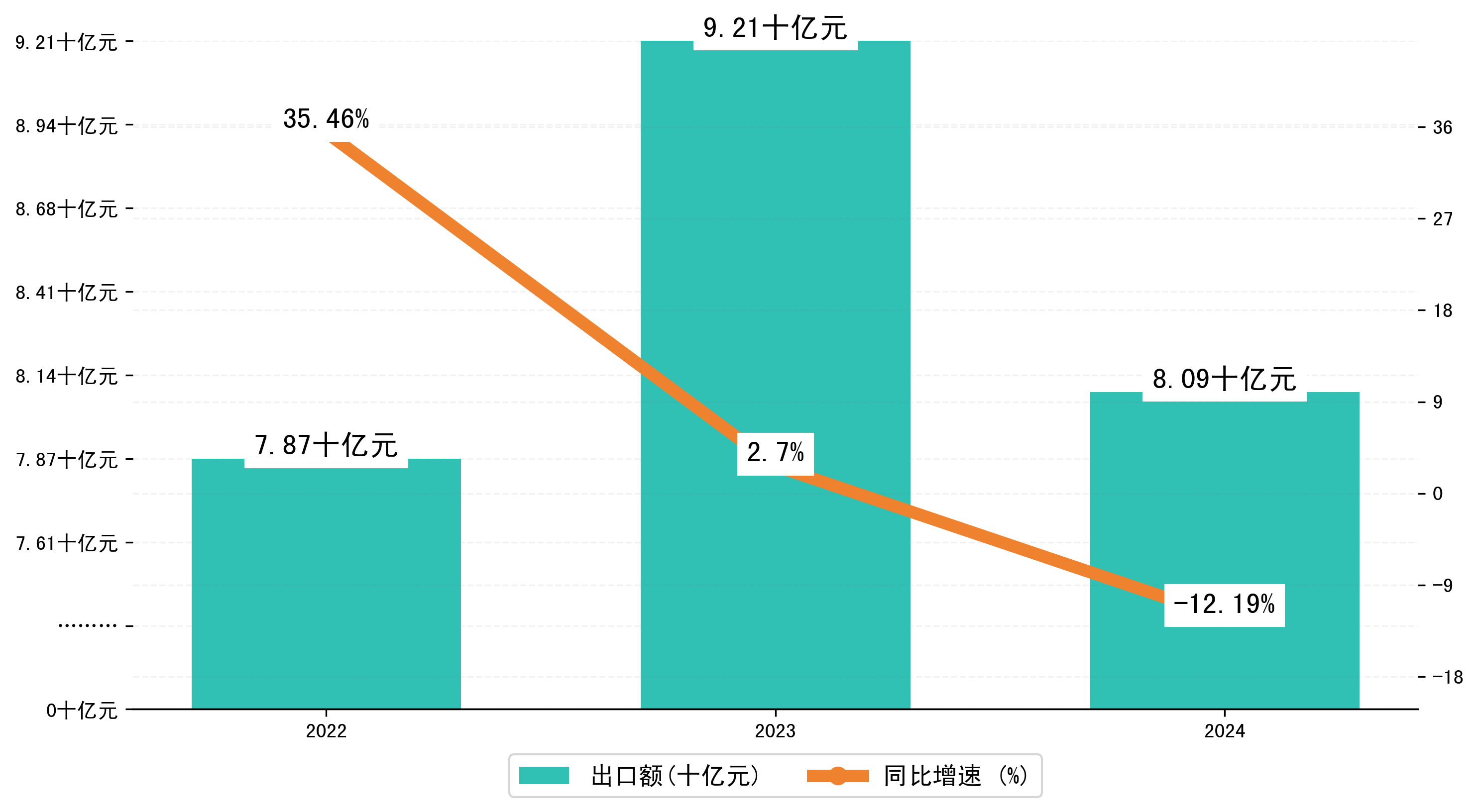 以人民币计,2024年1-3月滁州市出口额为80,8722.8063万元,相比上年同期减少了11,2273.9123万元,同比减少了-7.30%。