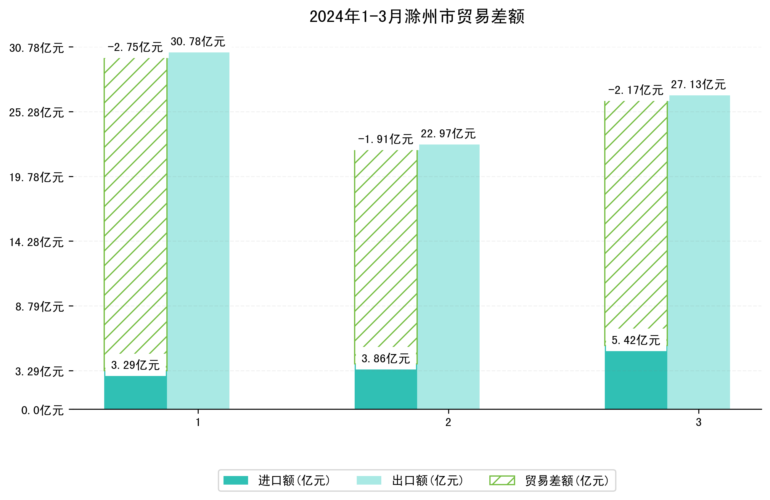 2024年3月滁州市进出口总额及进出口差额统计分析