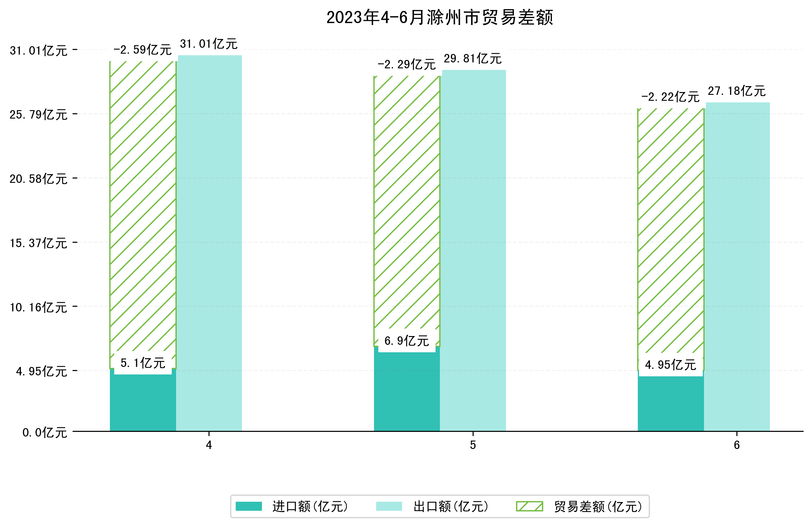 2023年6月滁州市进出口总额及进出口差额统计分析