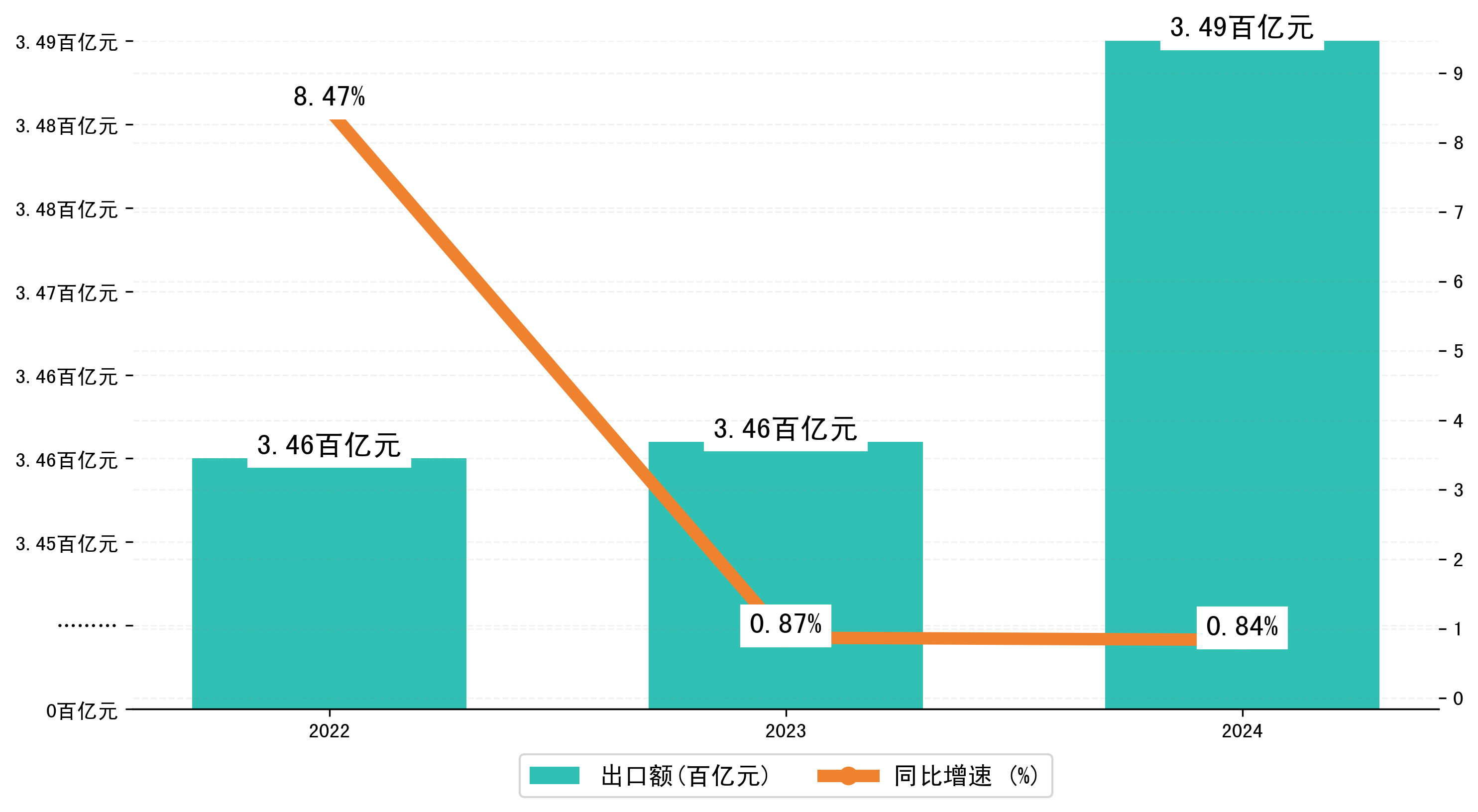 以人民币计,2024年1-12月滁州市出口额为348,7795.312万元,相比上年同期增加了2,8899.314万元,同比增加了0.90%。