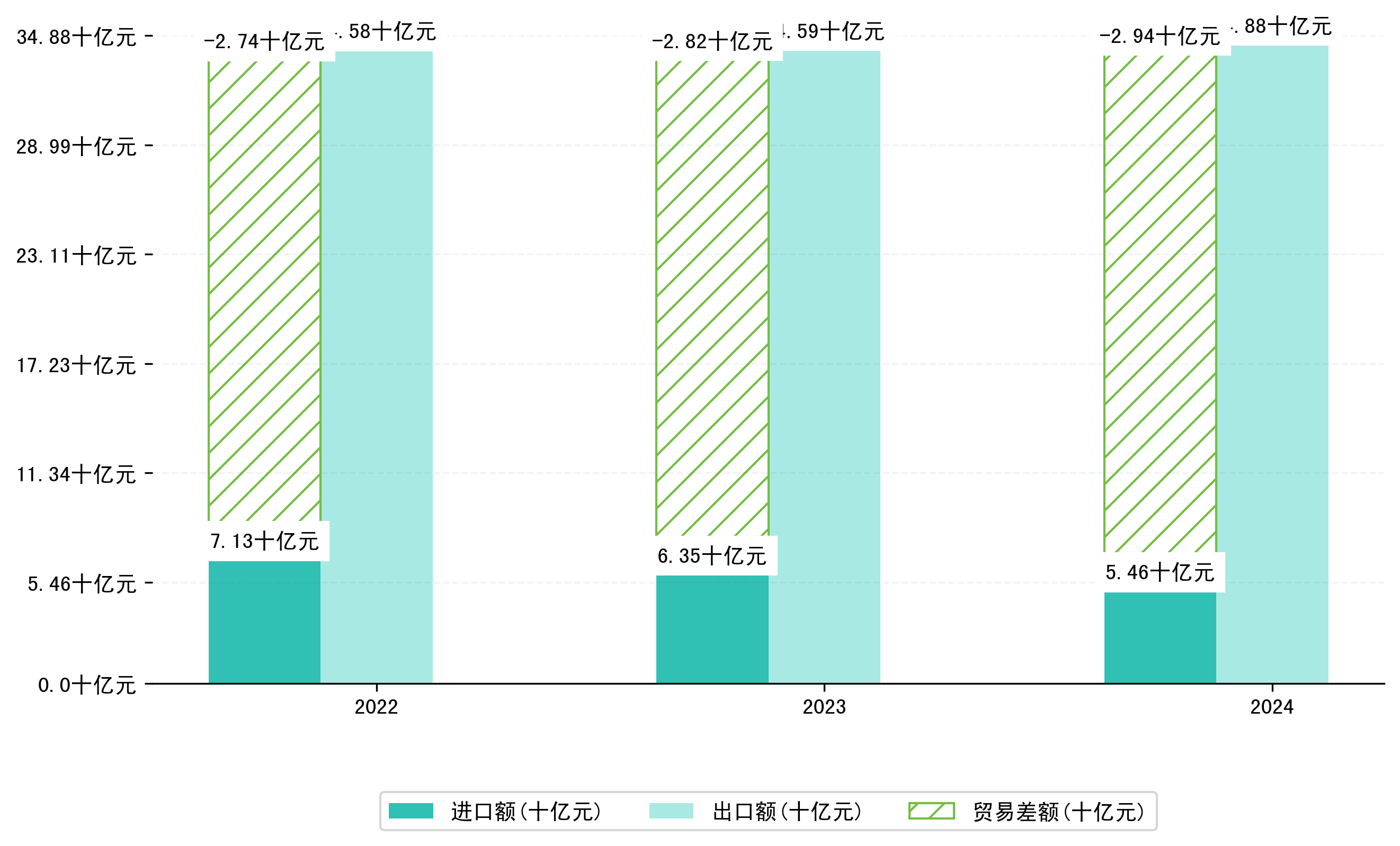 以美元计,2024年1-12月滁州市贸易差额为41,3474,1791万美元(贸易顺差),相比上年同期增加了1,1436,2667万美元,同比增加2.84%。