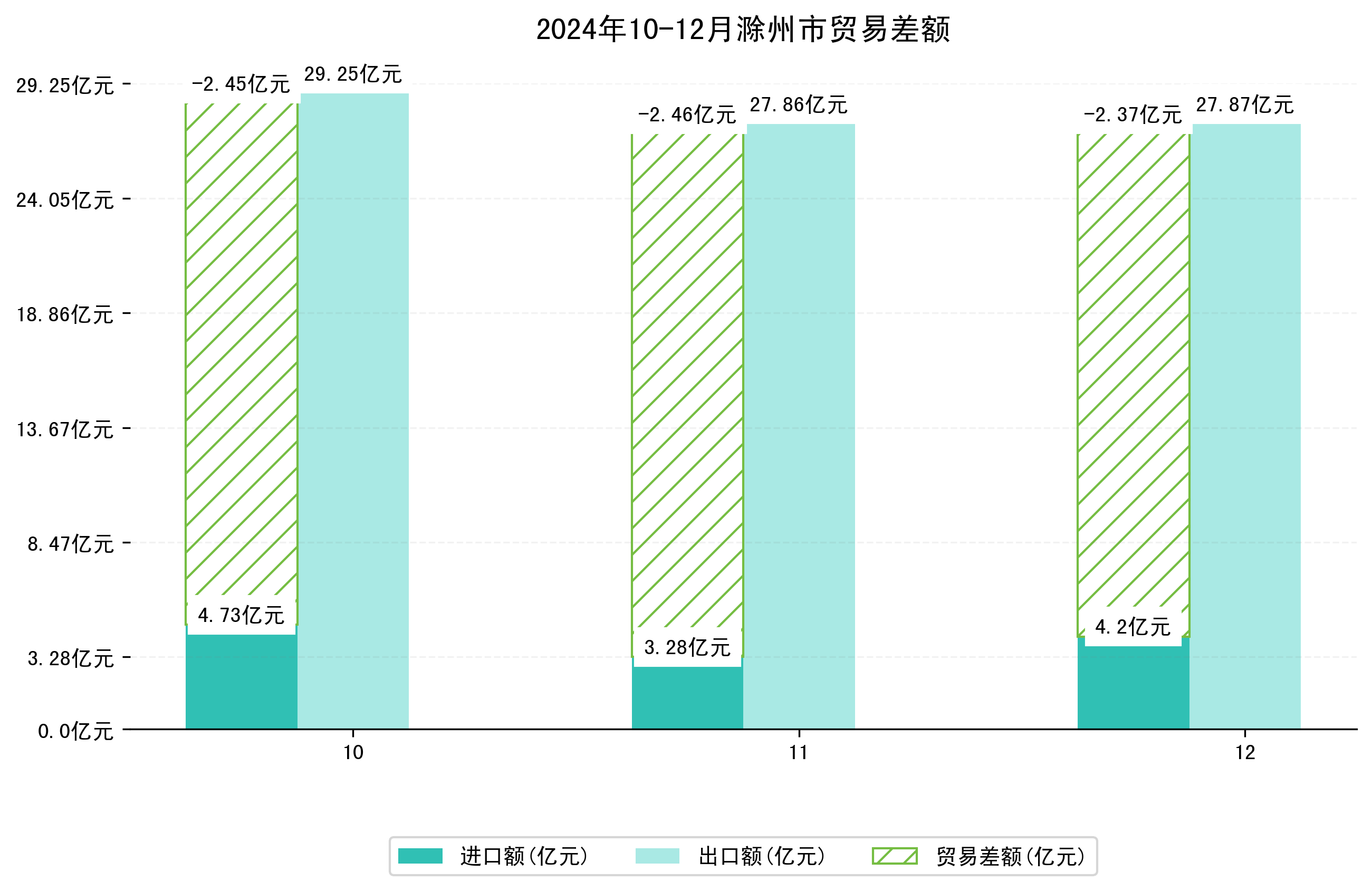 2024年12月滁州市进出口总额及进出口差额统计分析