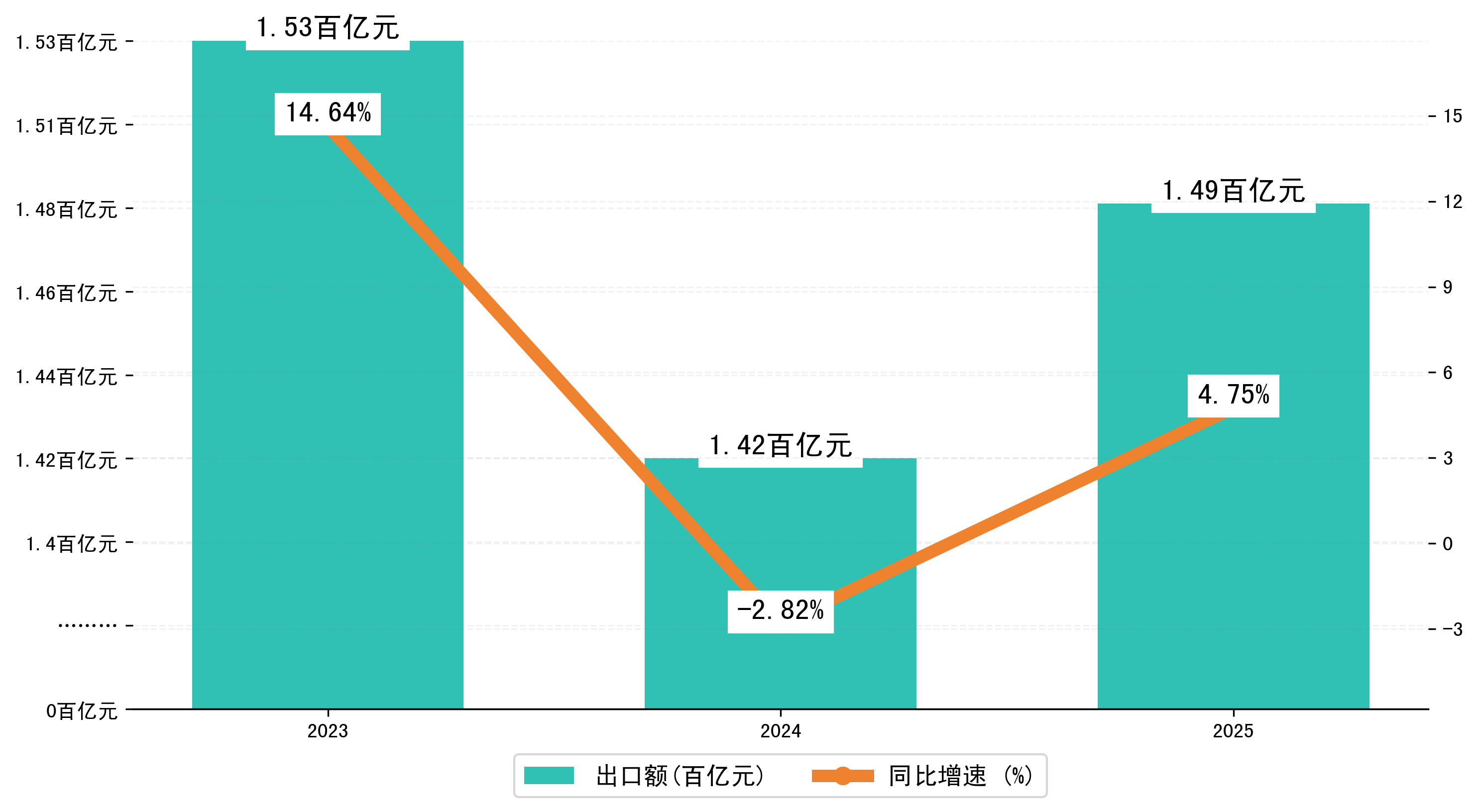 以人民币计,2025年1-5月滁州市出口额为148,5992.2395万元,相比上年同期增加了6,7413.1283万元,同比增加了4.80%。