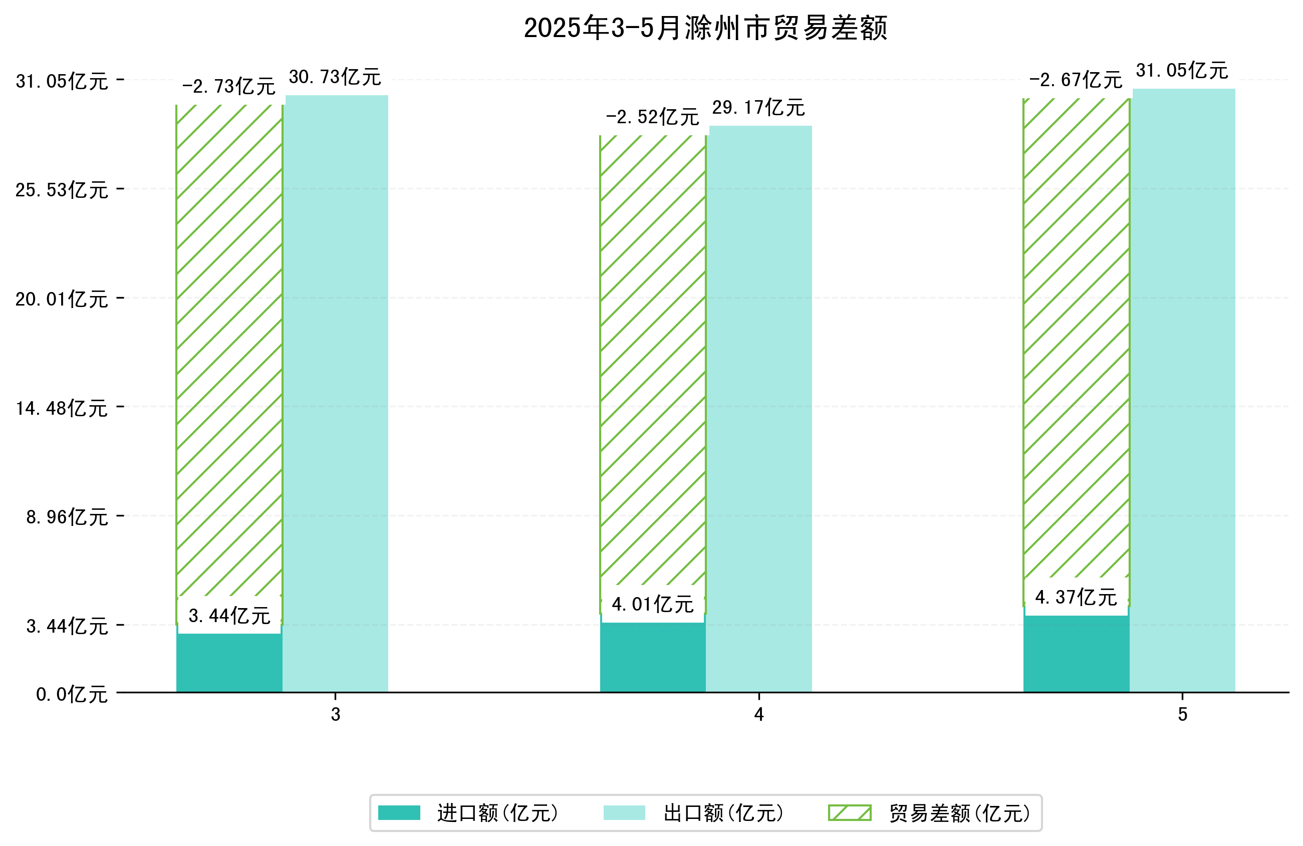 2025年5月滁州市进出口总额及进出口差额统计分析