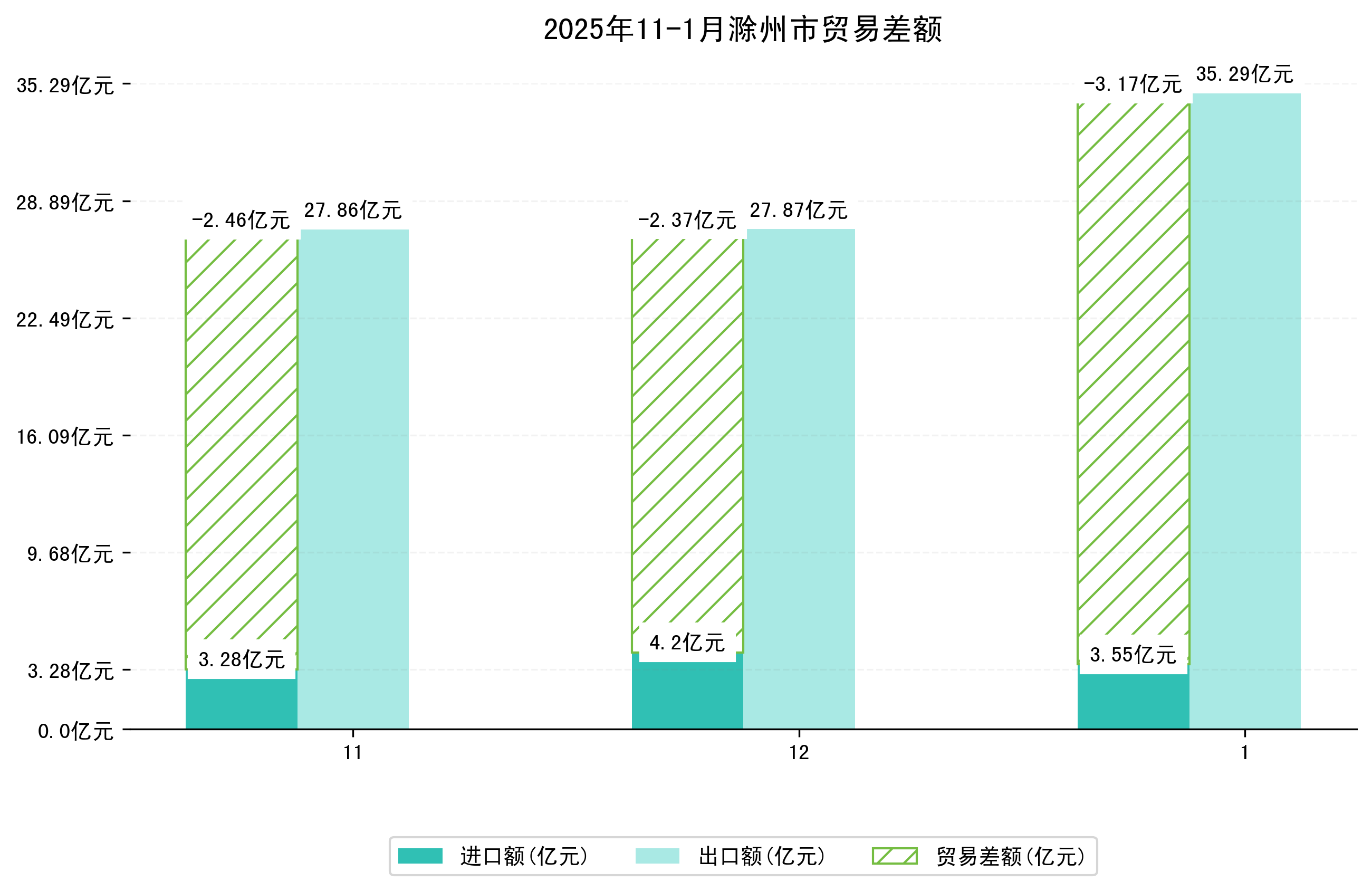 2025年1月滁州市进出口总额及进出口差额统计分析