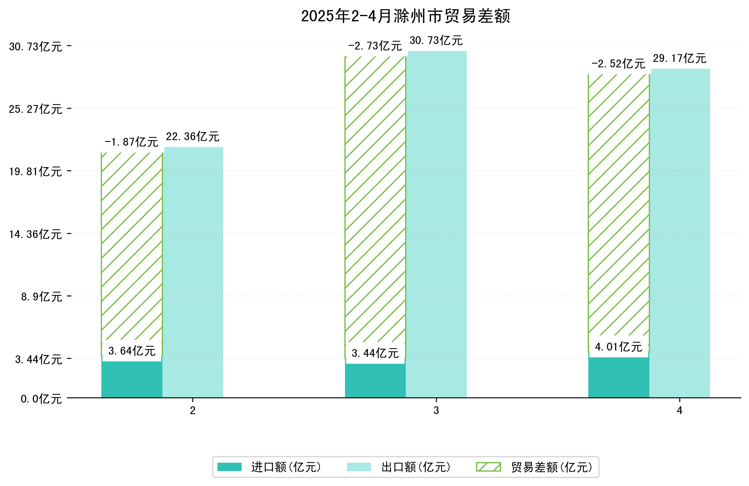 2025年4月滁州市进出口总额及进出口差额统计分析