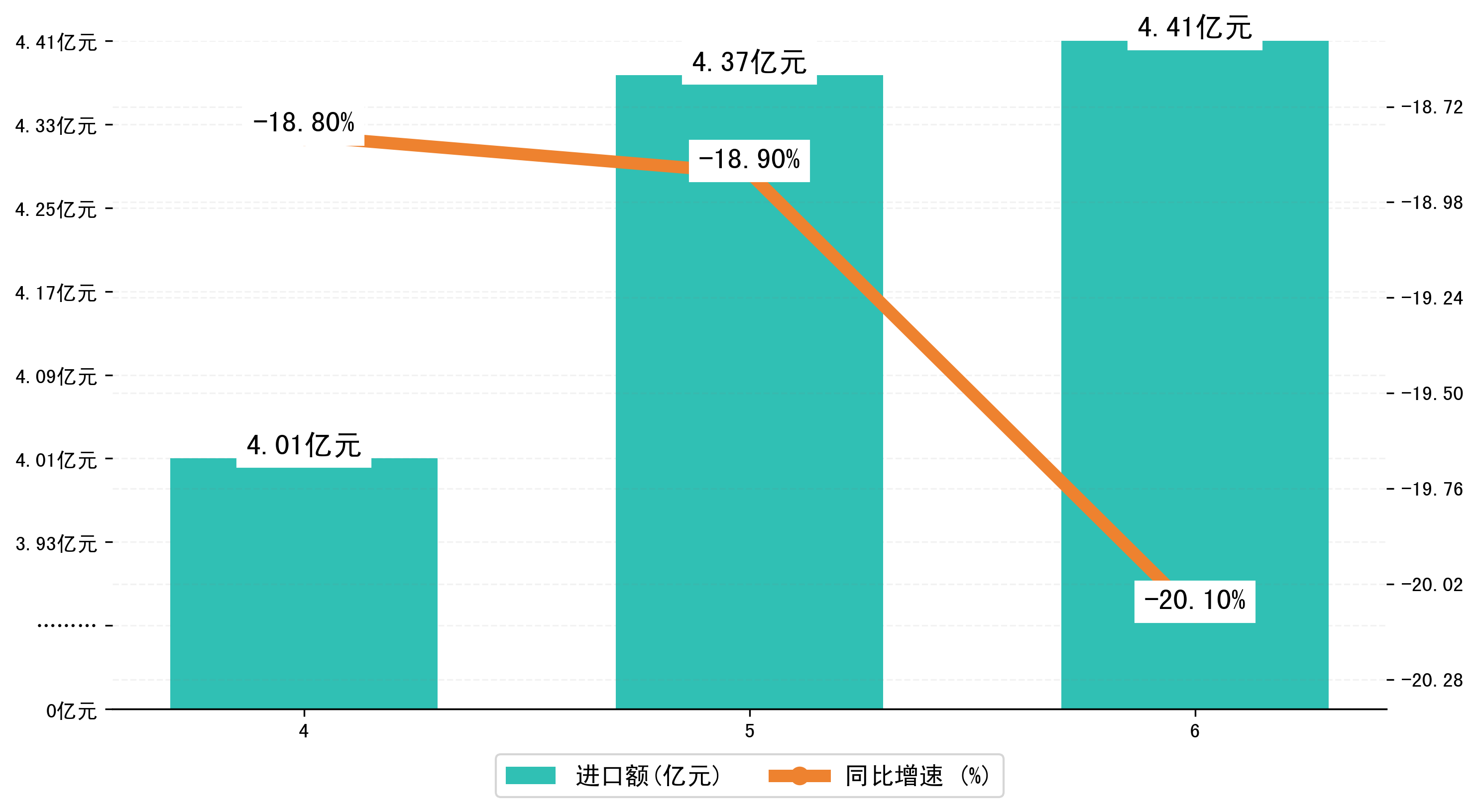 以美元计,2025年6月滁州市进口额为6130.108万美元,相比上月增加了50.583万美元;相比上年同期减少了2090.7597万美元,同比减少-20.90%。
