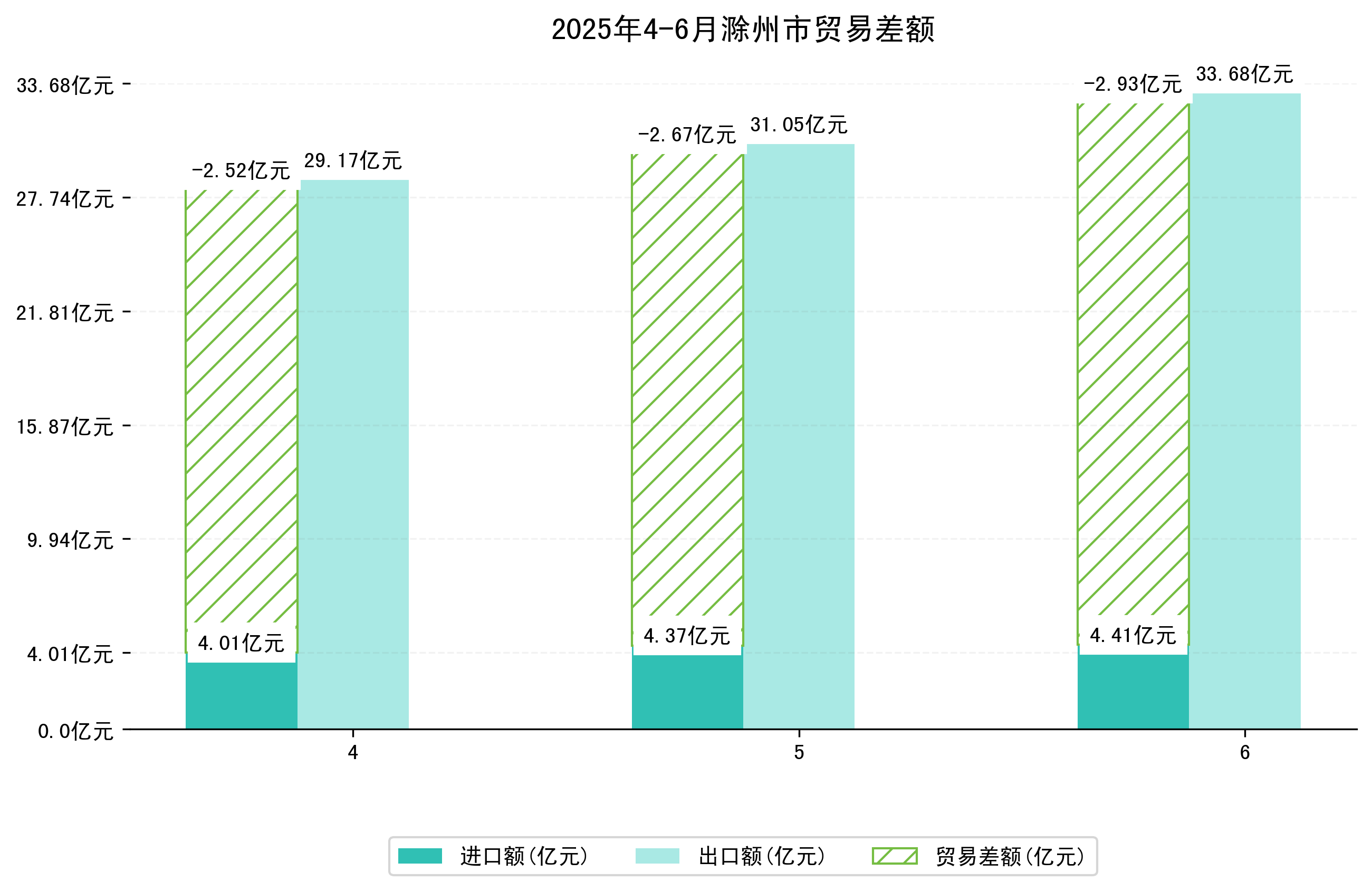 2025年6月滁州市进出口总额及进出口差额统计分析