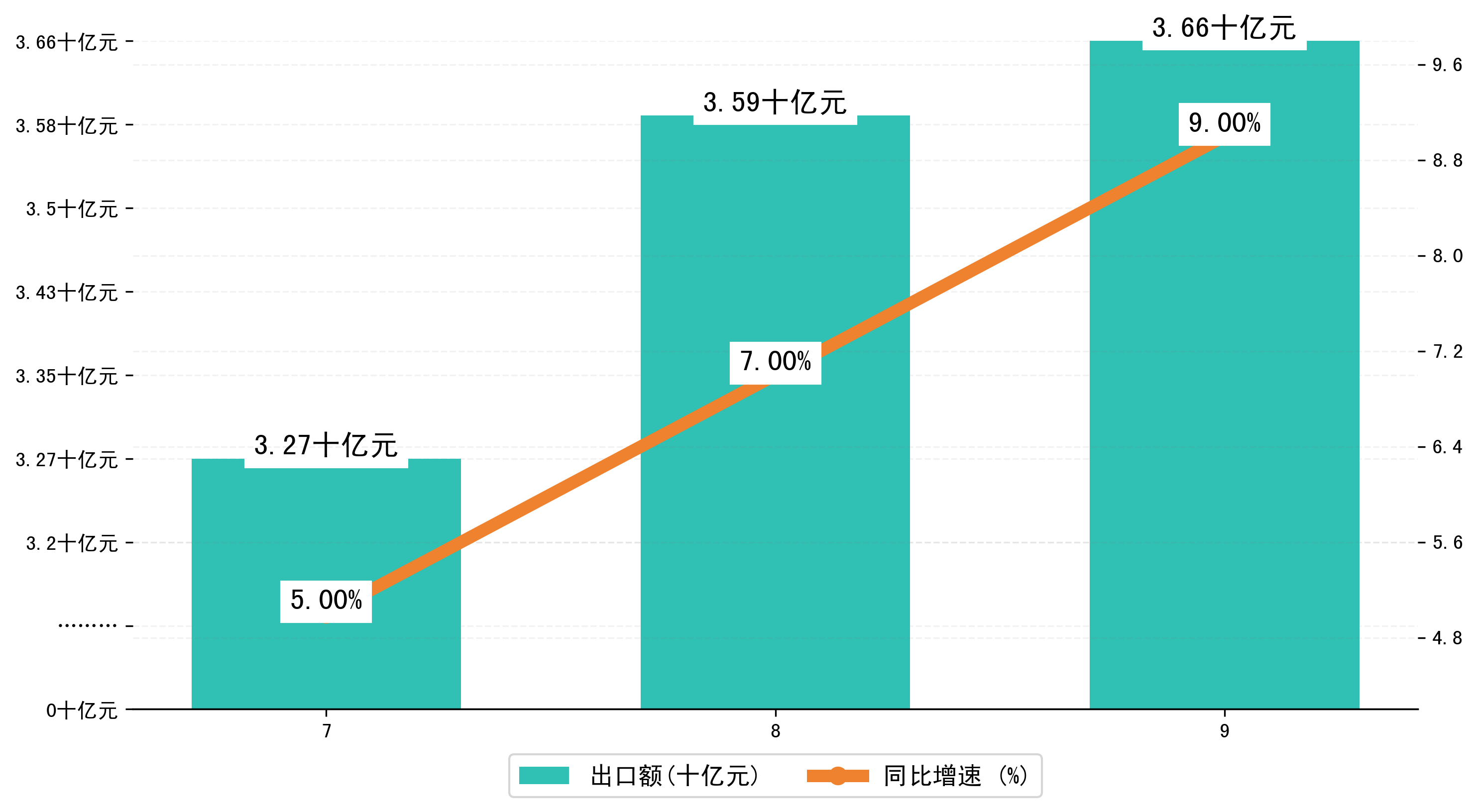 一、2025年9月滁州市单月出口总额及进出口差额统计分析