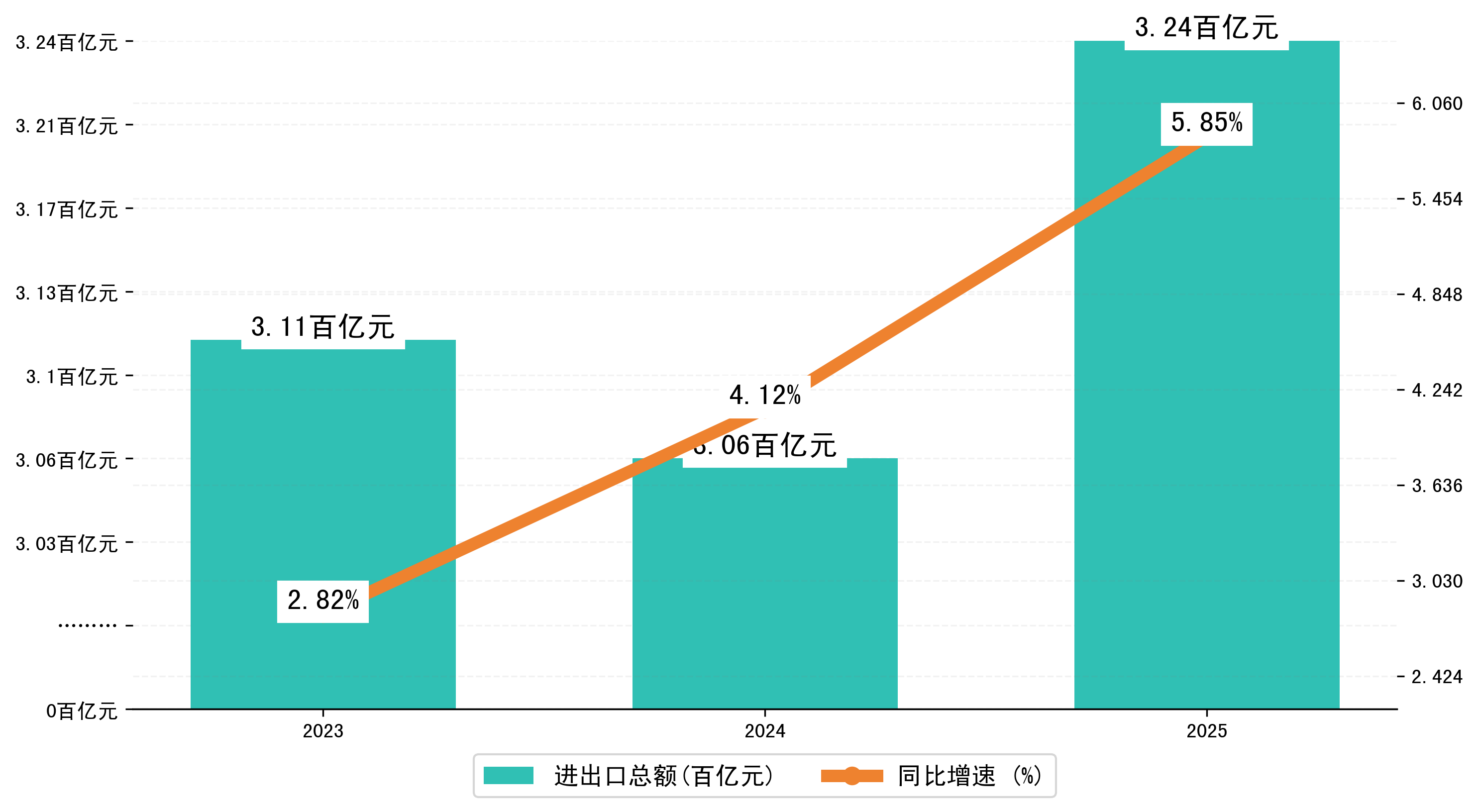以人民币计,2025年1-9月滁州市进出口总额为324,1852.3764万元,相比上年同期增加了17,9230.5255万元,同比增加了5.90%。
