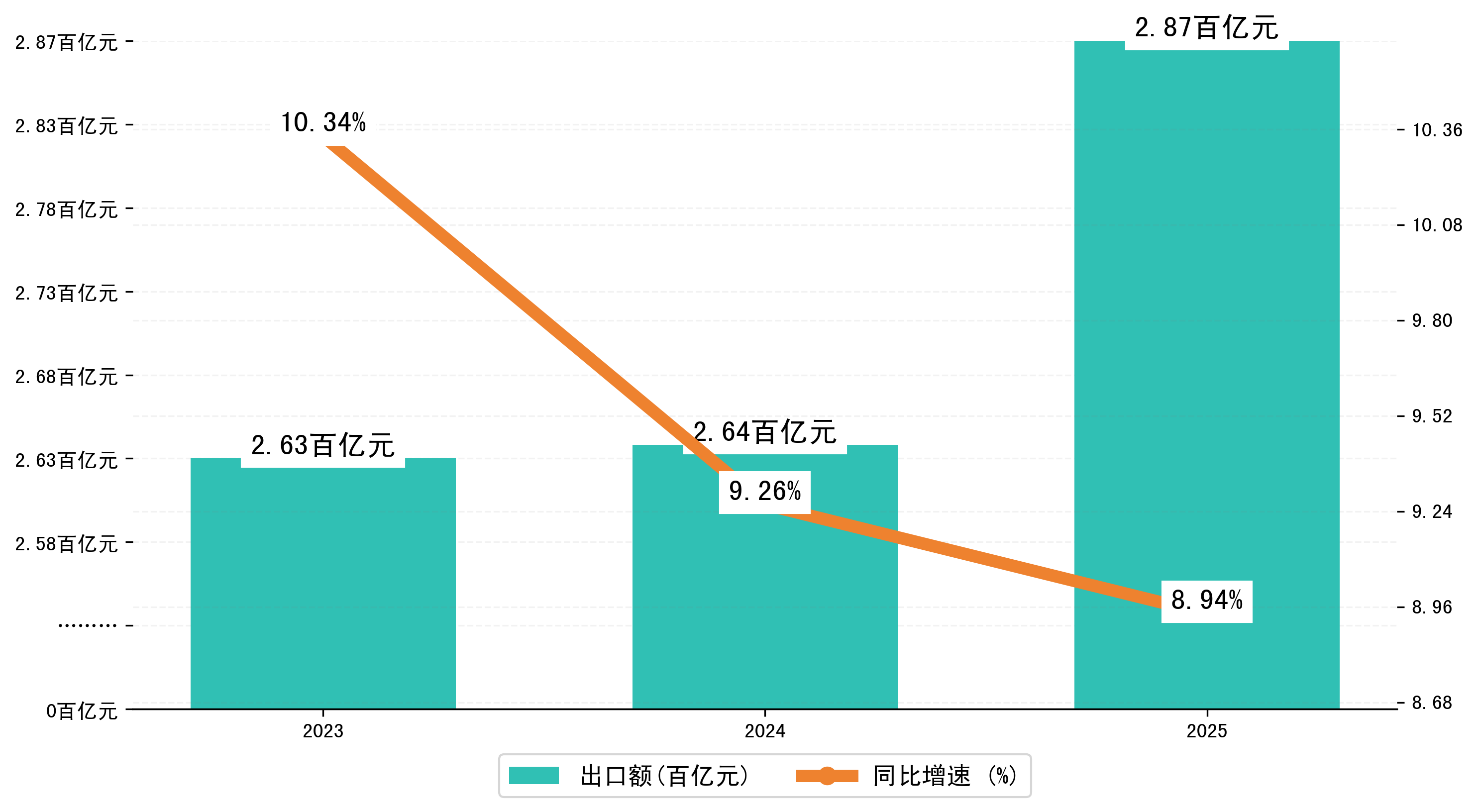 以人民币计,2025年1-9月滁州市出口额为287,4563.4955万元,相比上年同期增加了23,5779.0538万元,同比增加了9.00%。