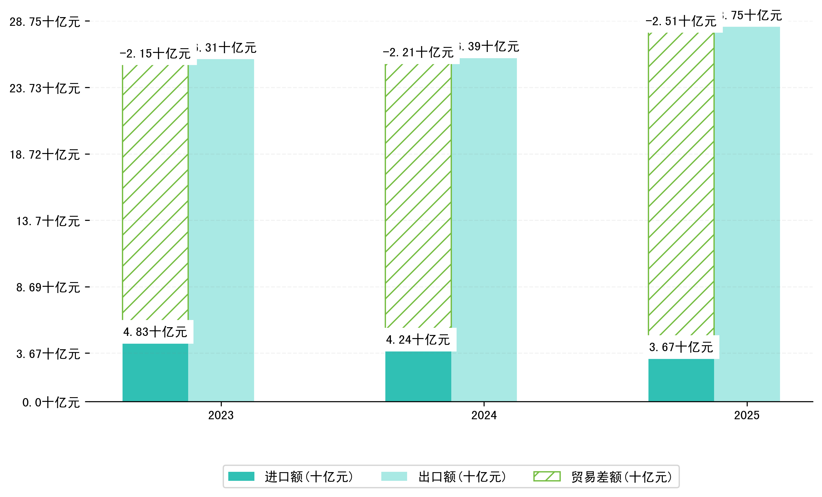 以人民币计,2025年1-9月滁州市贸易差额为250,7274,6145万元(贸易顺差),相比上年同期增加了29,2327,5820万元,同比增加13.2%。